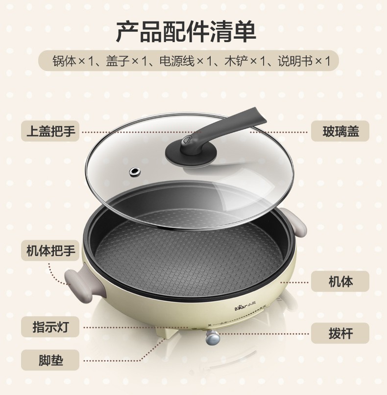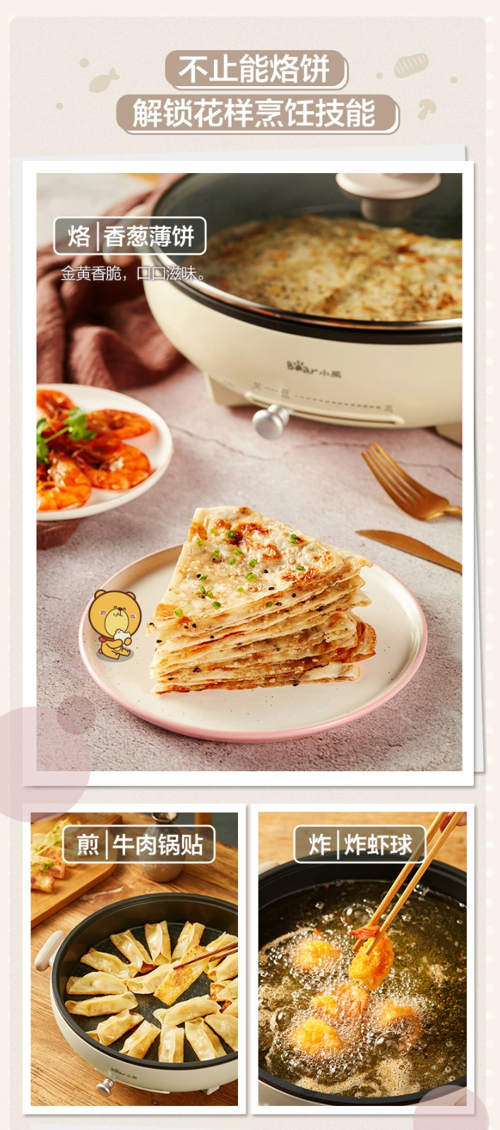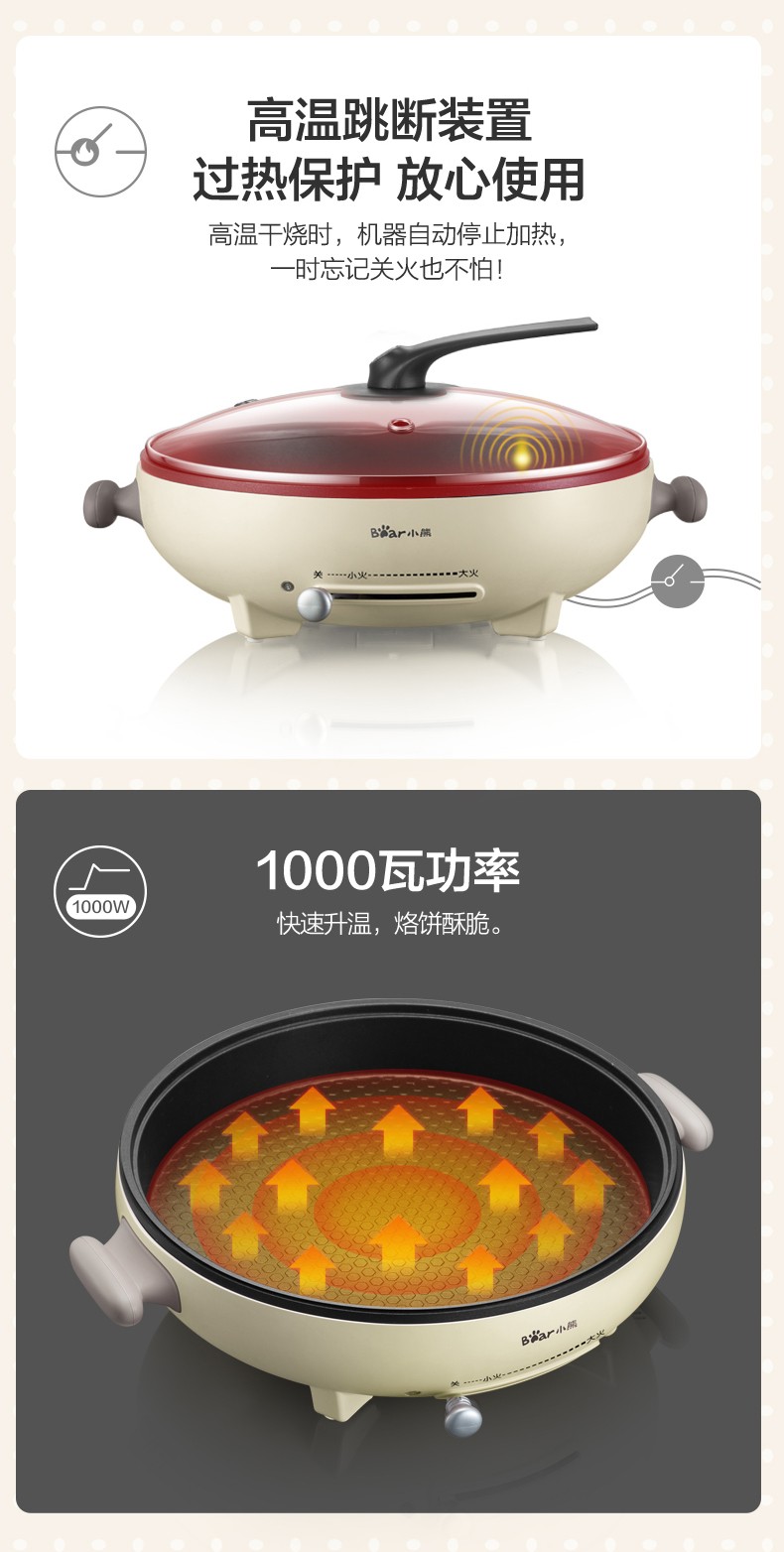 小熊(Bear) 电饼铛加深加大煎饼铛烙饼机多用途锅电煎锅单盘电烤盘不粘锅 DBC-D10L3