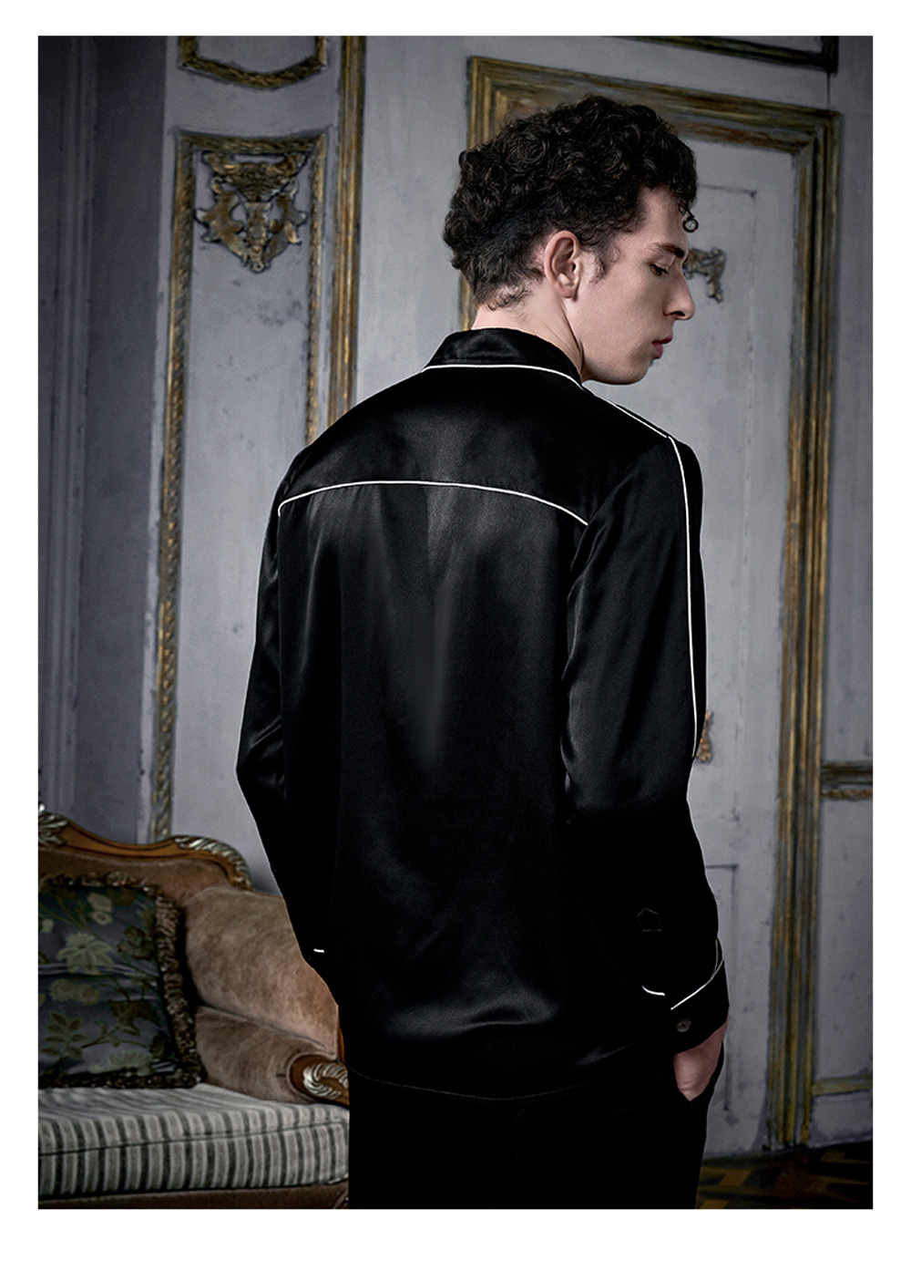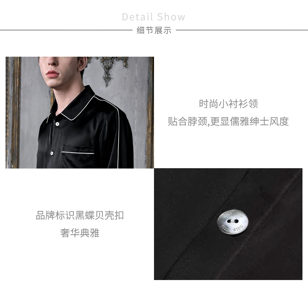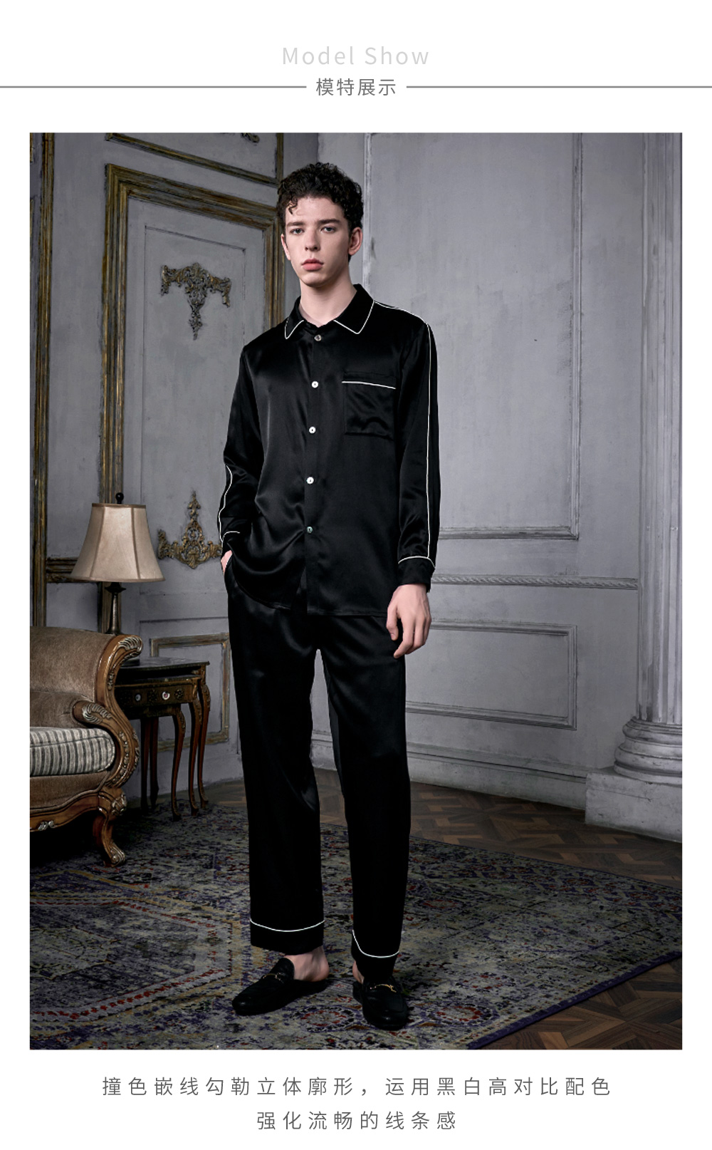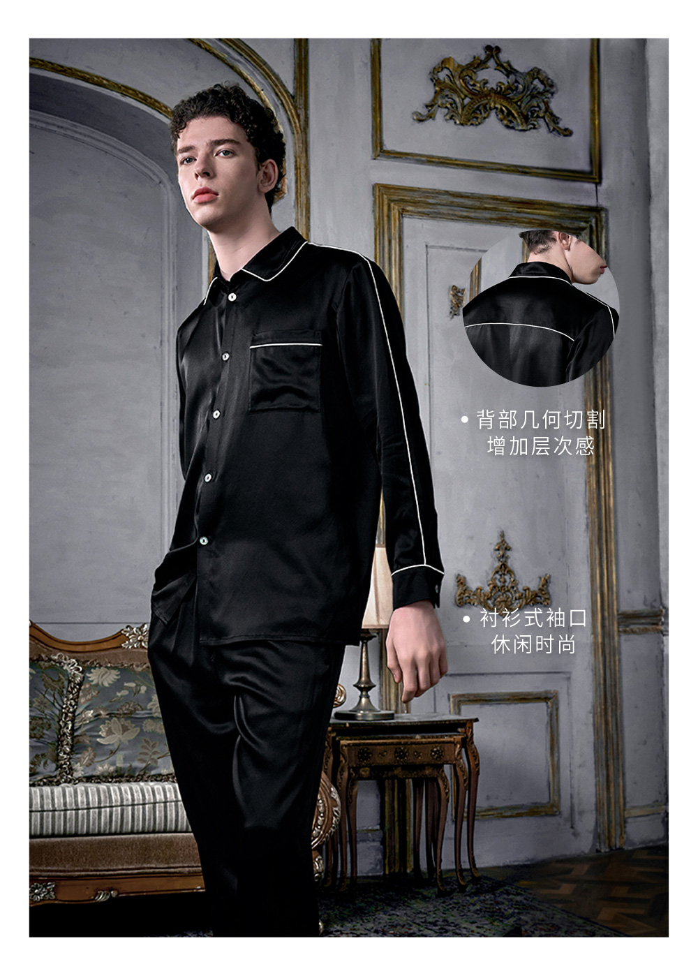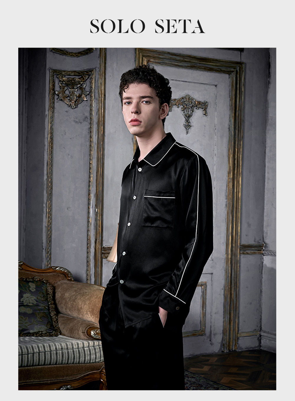 soloseta22姆米重磅真丝男士睡衣套装桑蚕丝纯色奢华高级感家居服