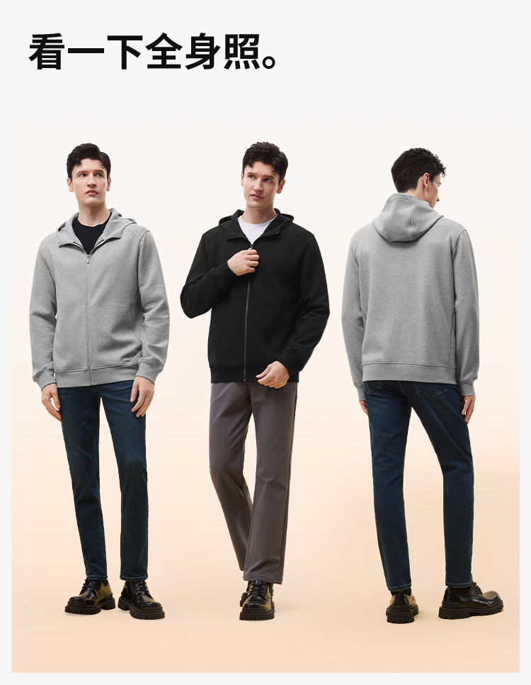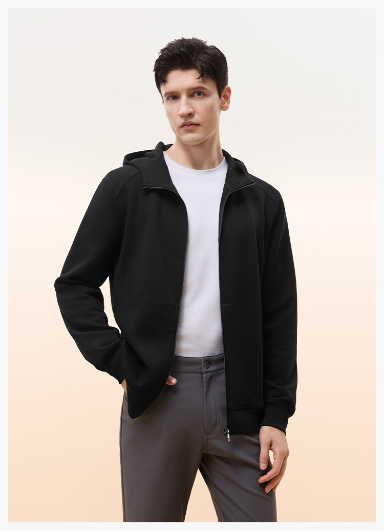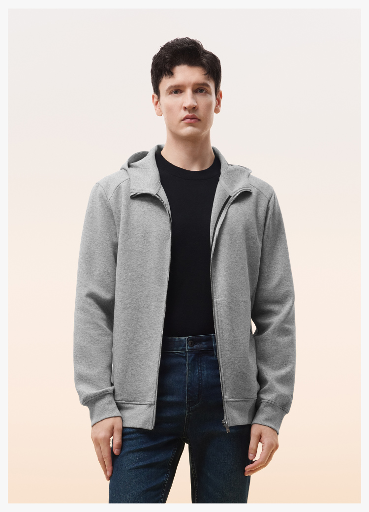 拇指白小T连帽开襟卫衣