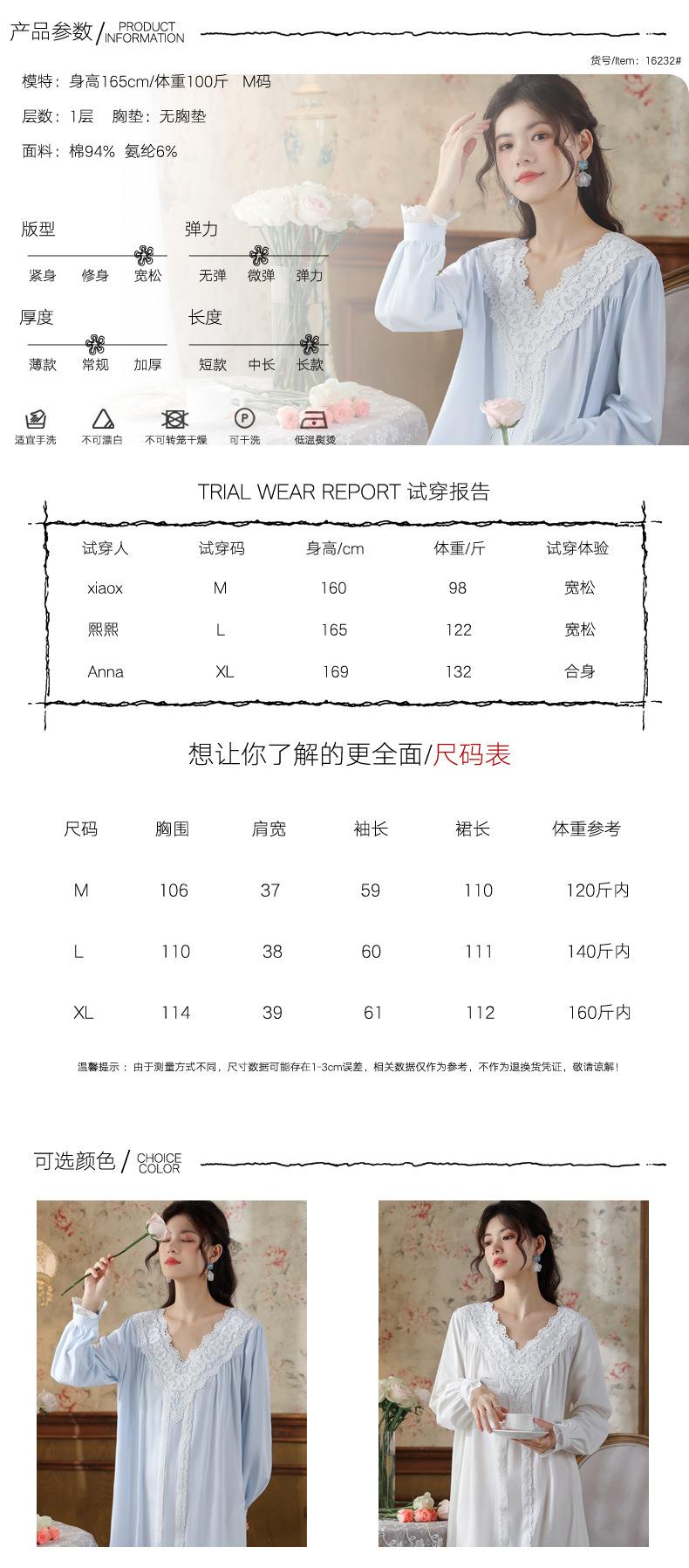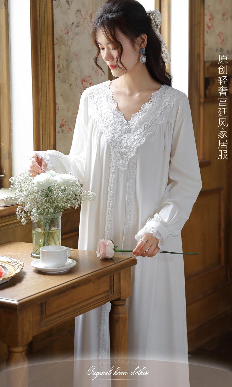 【浪漫女神·宫廷风】2026春夏长袖睡裙女春棉宫廷风复古蕾丝公主睡衣宽松大码可外穿家居服秋冬