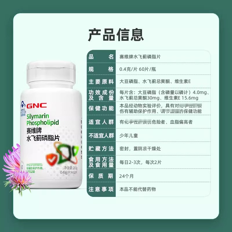GNC 健安喜 赛维水飞蓟磷脂片 28.8g/瓶