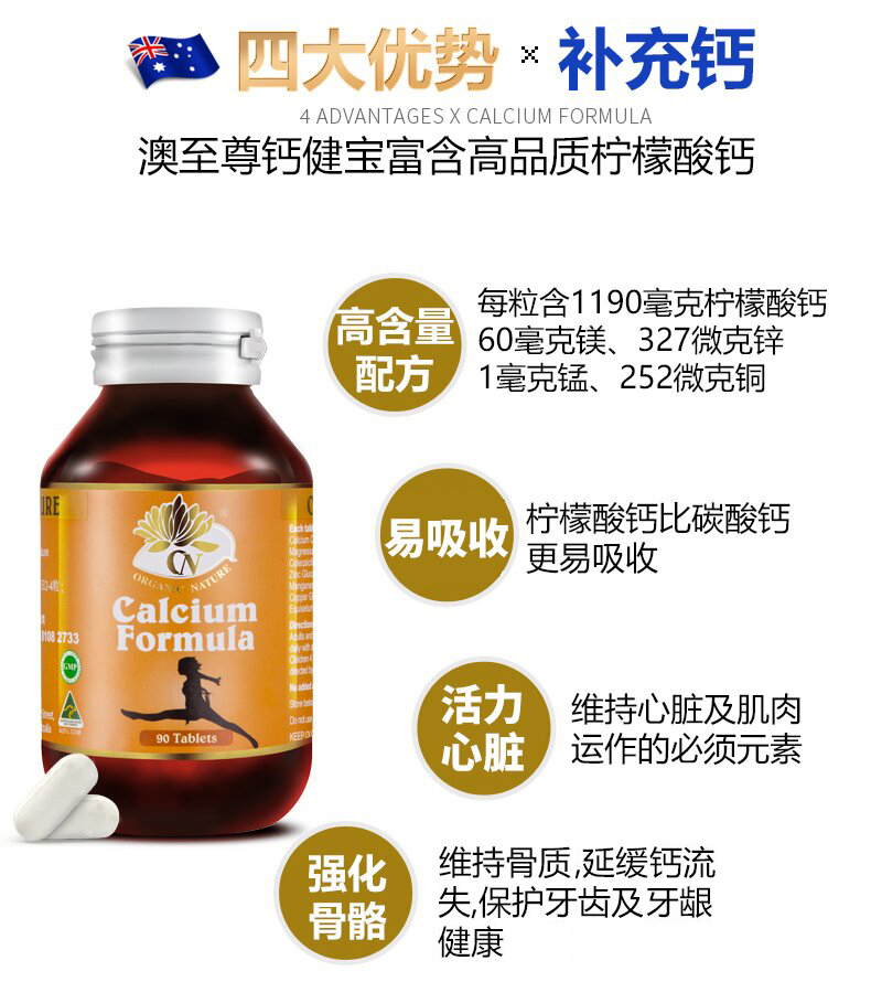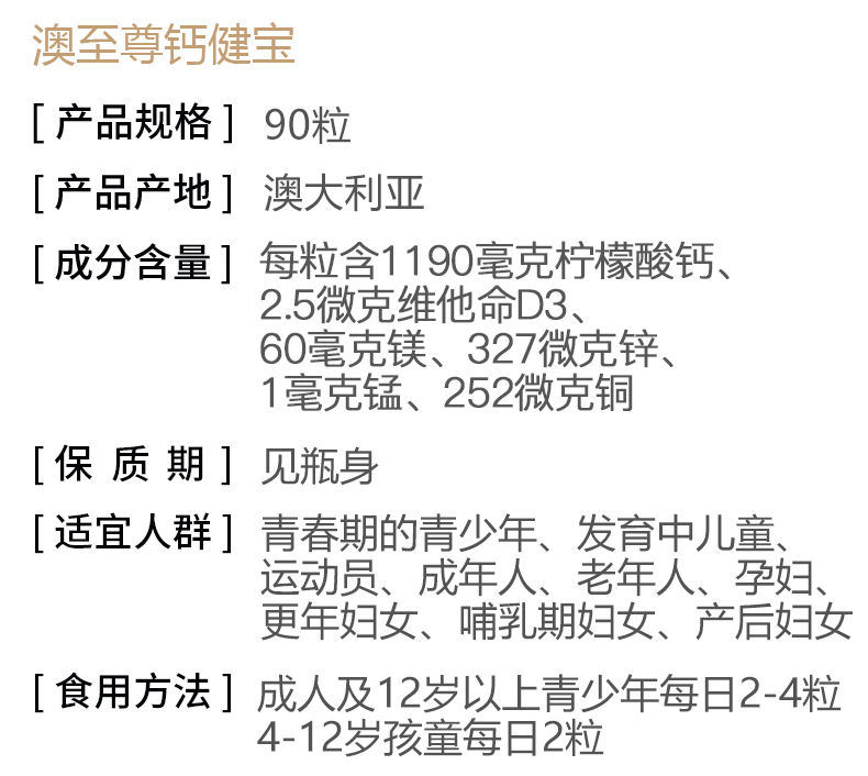 澳至尊钙健宝柠檬酸钙片90粒 保质期至2027-12-31