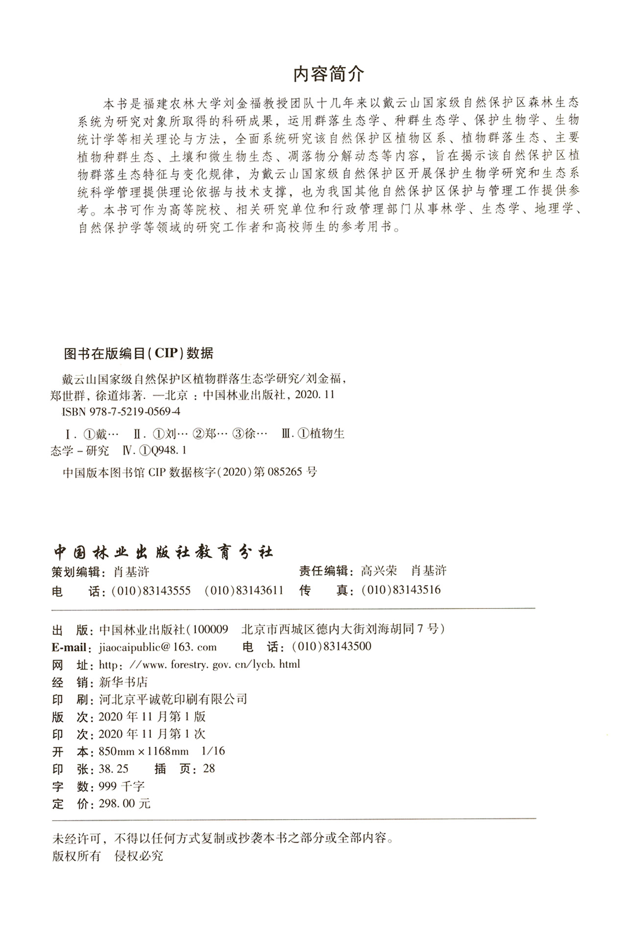 戴云山国家级自然保护区植物群落生态学研究 刘金福//郑世群//徐道炜 0569 中国林业出版社