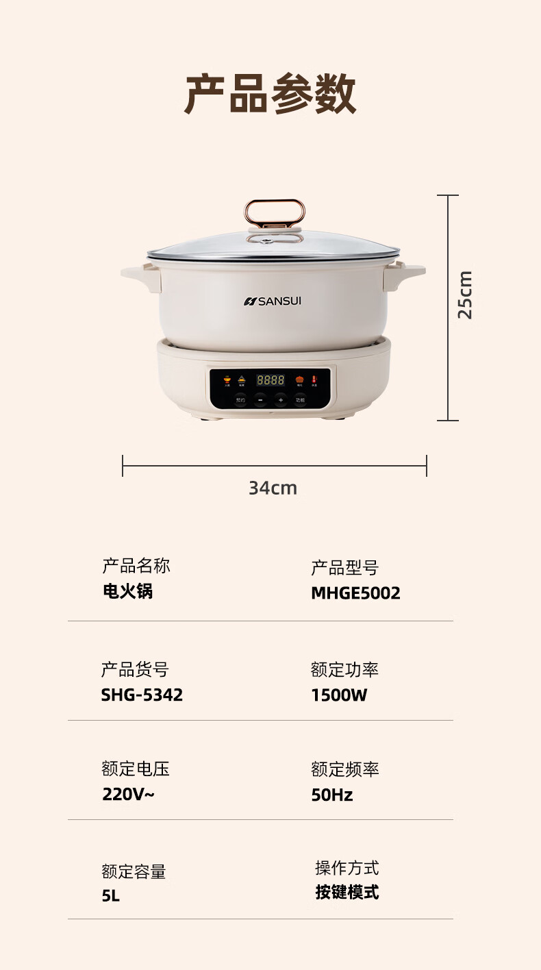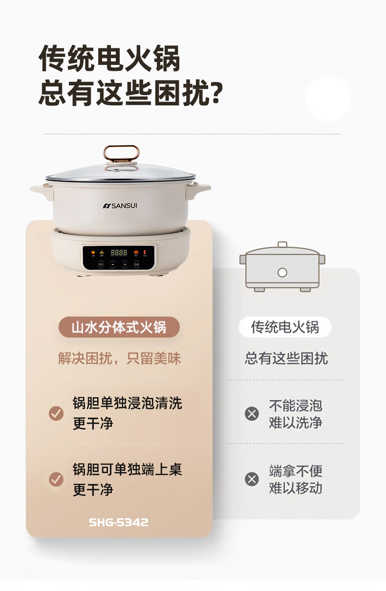 日本山水SANSUI多功能分体电火锅(电脑款)SHG-5342 5L
