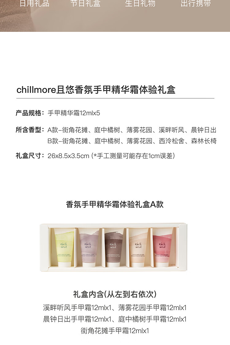 chillmore 且悠 手甲精华霜体验礼盒 12ml*5-B款礼盒