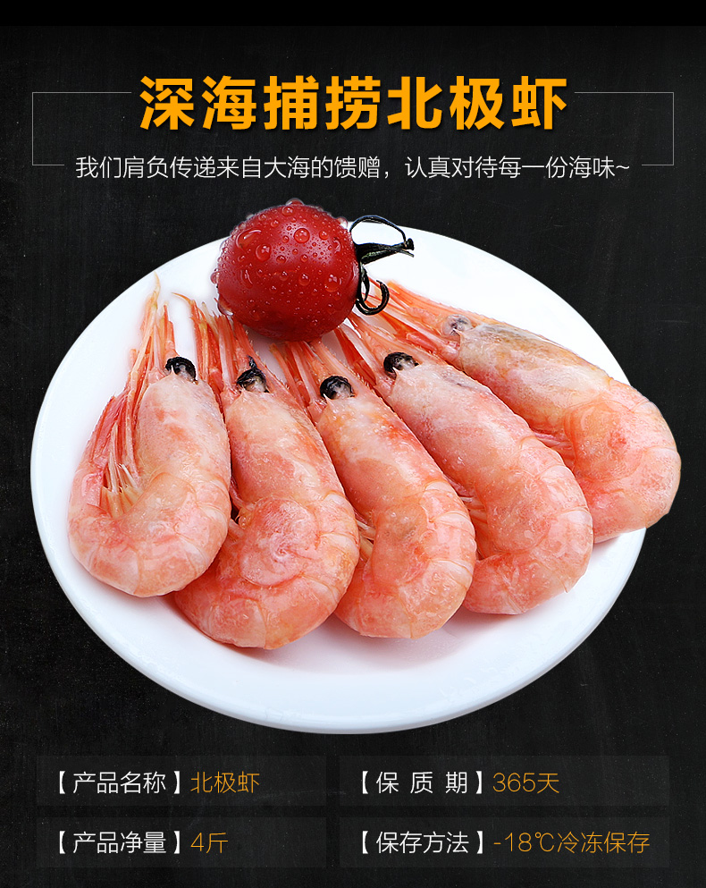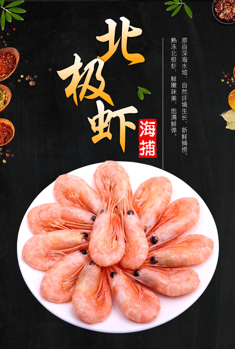 北极虾甜头膏腹籽虾刺身冰虾海鲜即食3斤