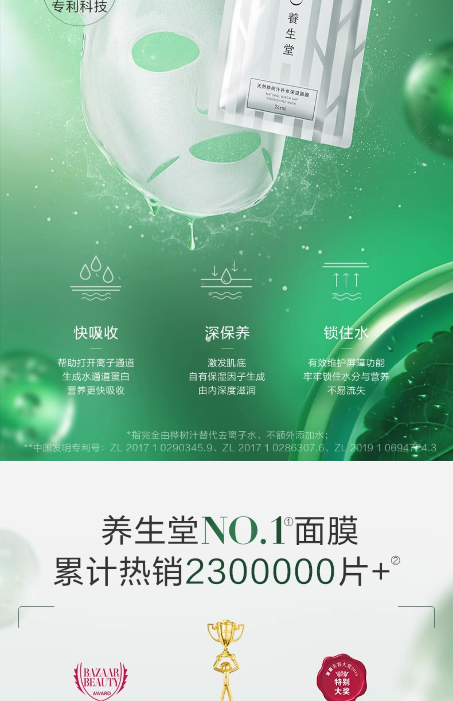 YOSEIDO养生堂桦树汁补水保湿面膜24ml*5