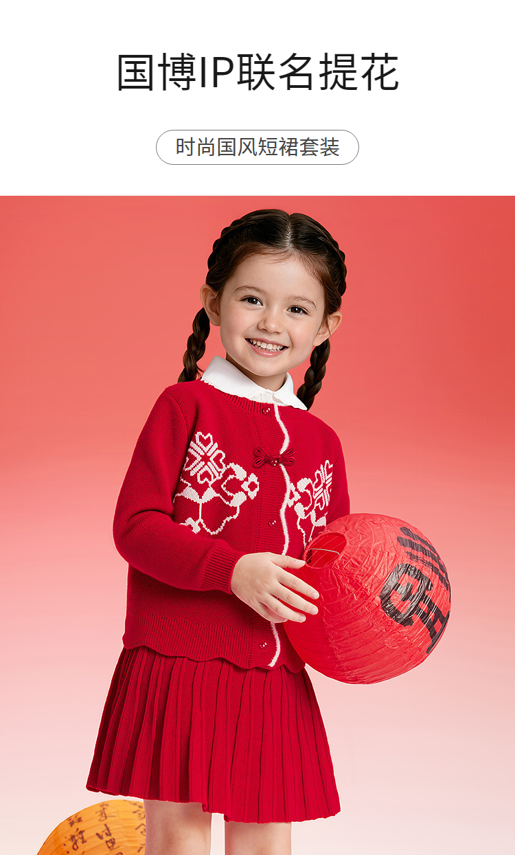 【国博IP】巴拉巴拉女童短裙套装国风春秋季两件套百搭时尚洋气