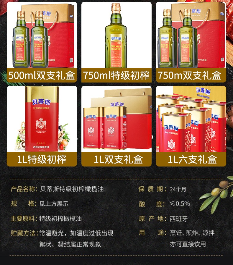 贝蒂斯 特级初榨橄榄油 750ml*2礼盒装