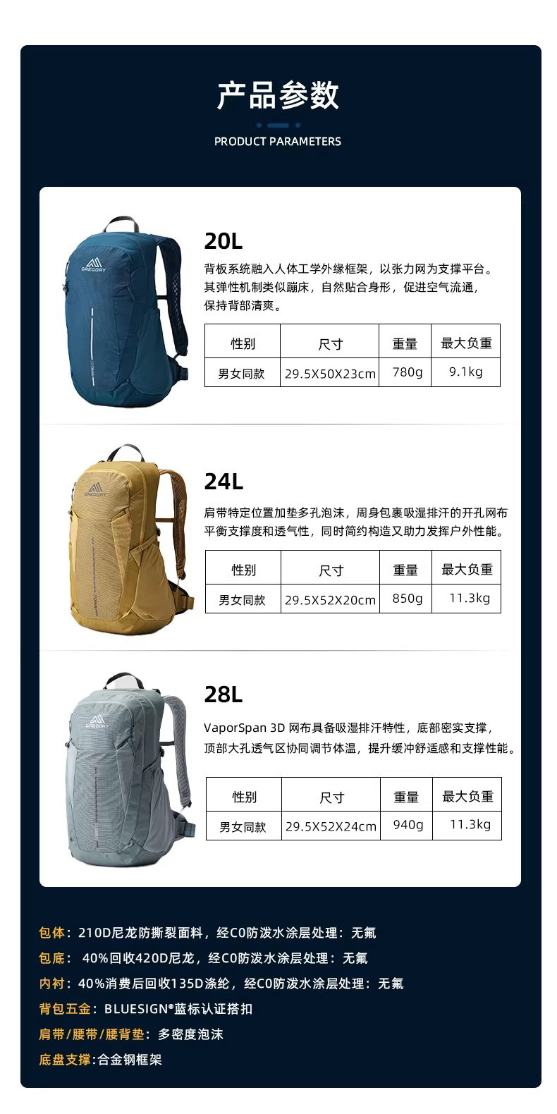 26款GREGORY格里高利ARRIO山野通风透气登山包春夏户外徒步双肩包
