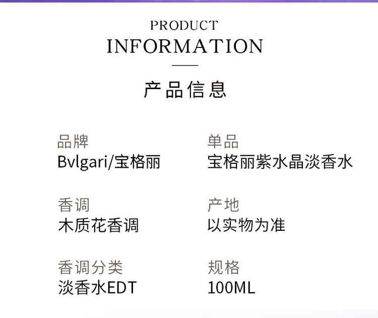 BVLGARI宝格丽紫水晶淡香水100ML