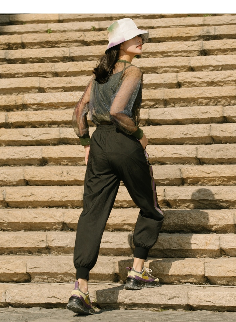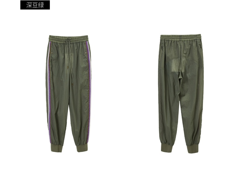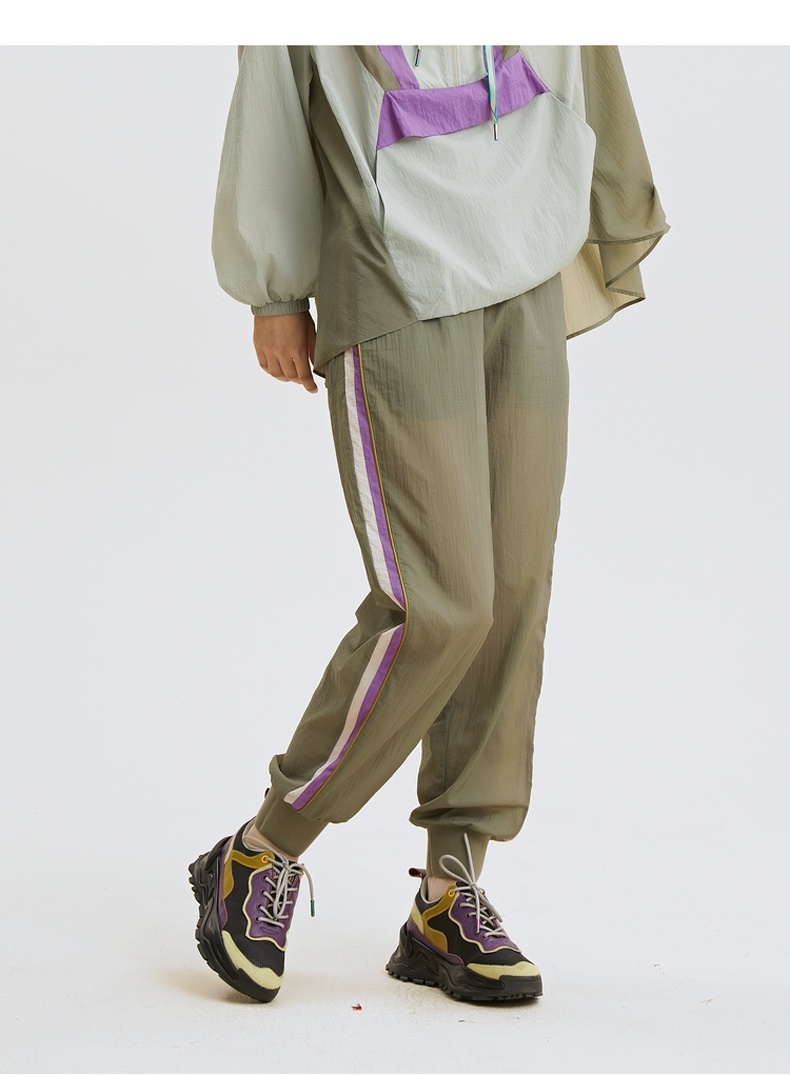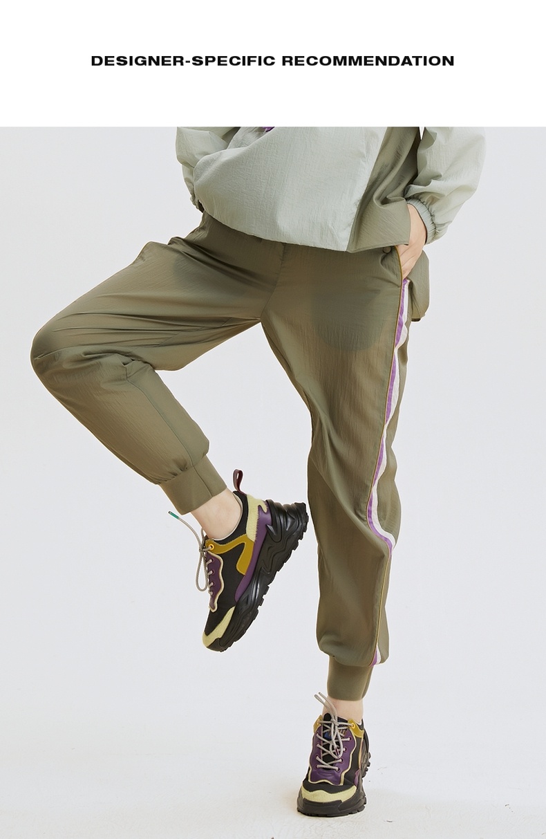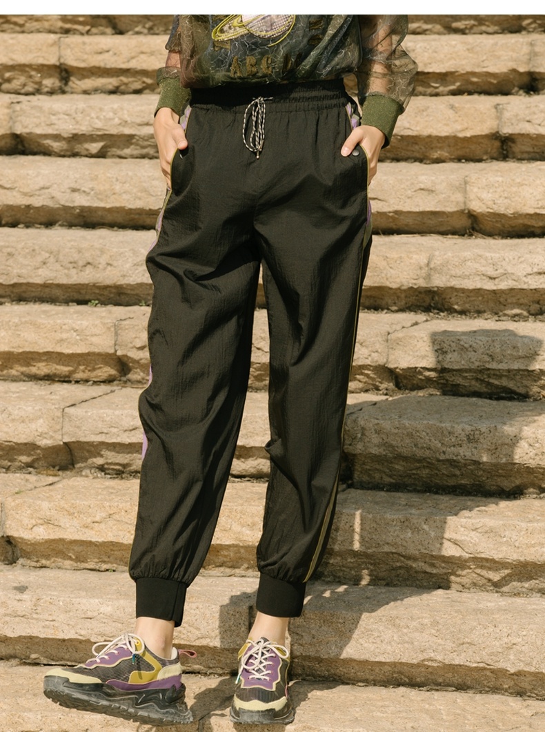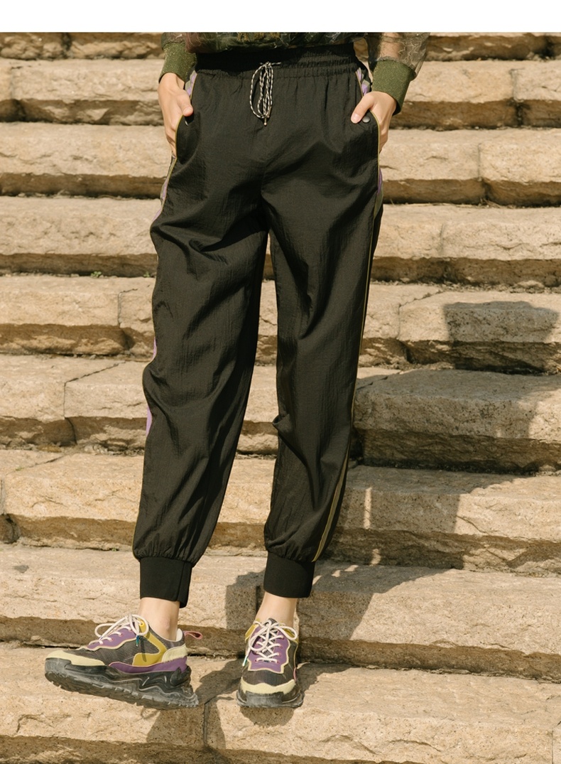 谜底休闲裤2021秋季新款侧缝撞色拼接松紧腰束脚长裤女213MK1765