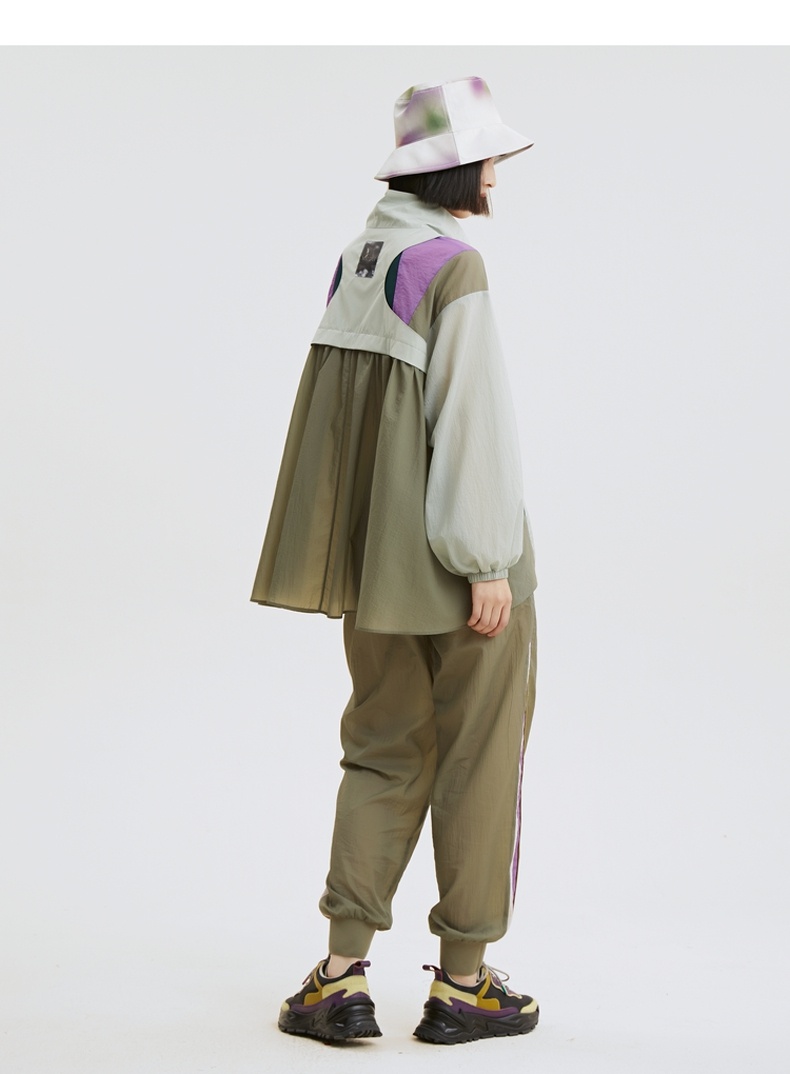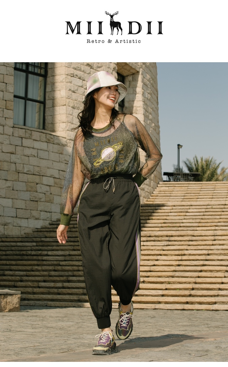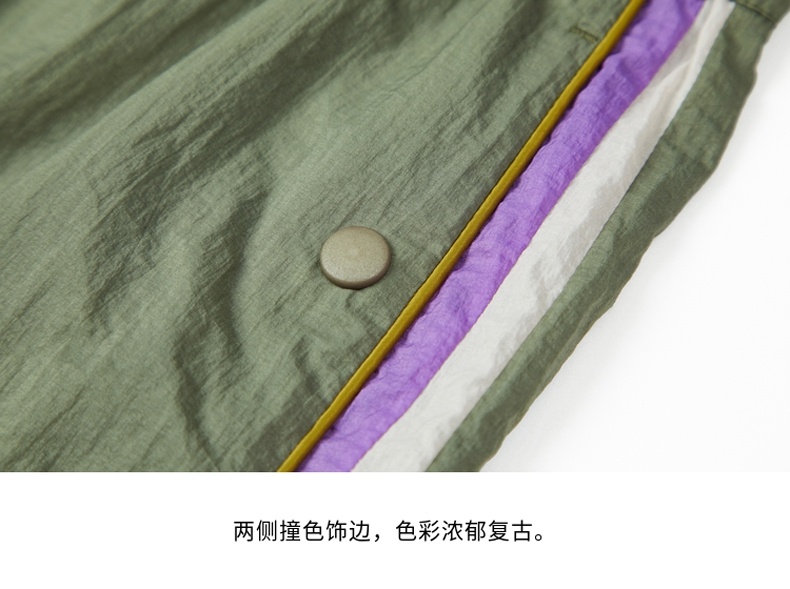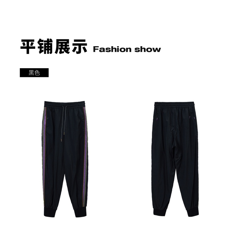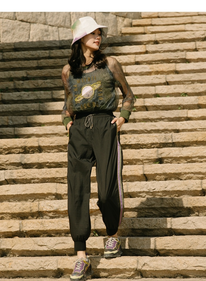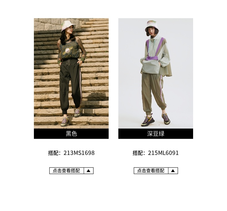 谜底休闲裤2021秋季新款侧缝撞色拼接松紧腰束脚长裤女213MK1765