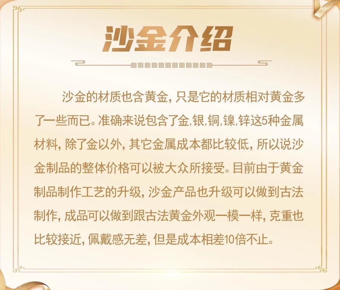 咱们直接从源头大厂拿货,高品质沙金+镀24k金的一个工艺,比你在市面看到的同等价位,质感要好很多很多!!