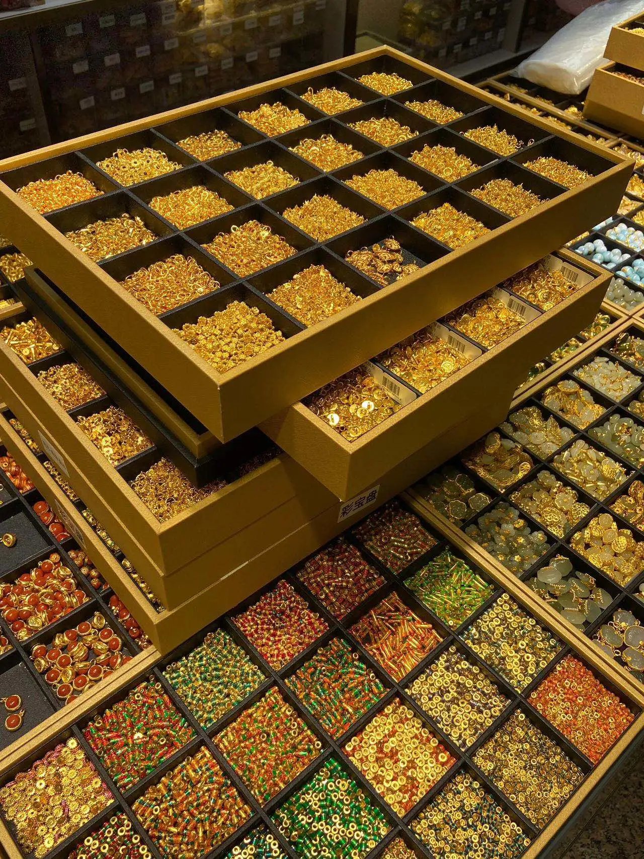 沙金具有黄金同等的外观效果,不掉色。成品金灿灿的,非常贵气。