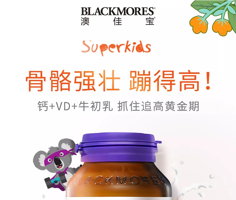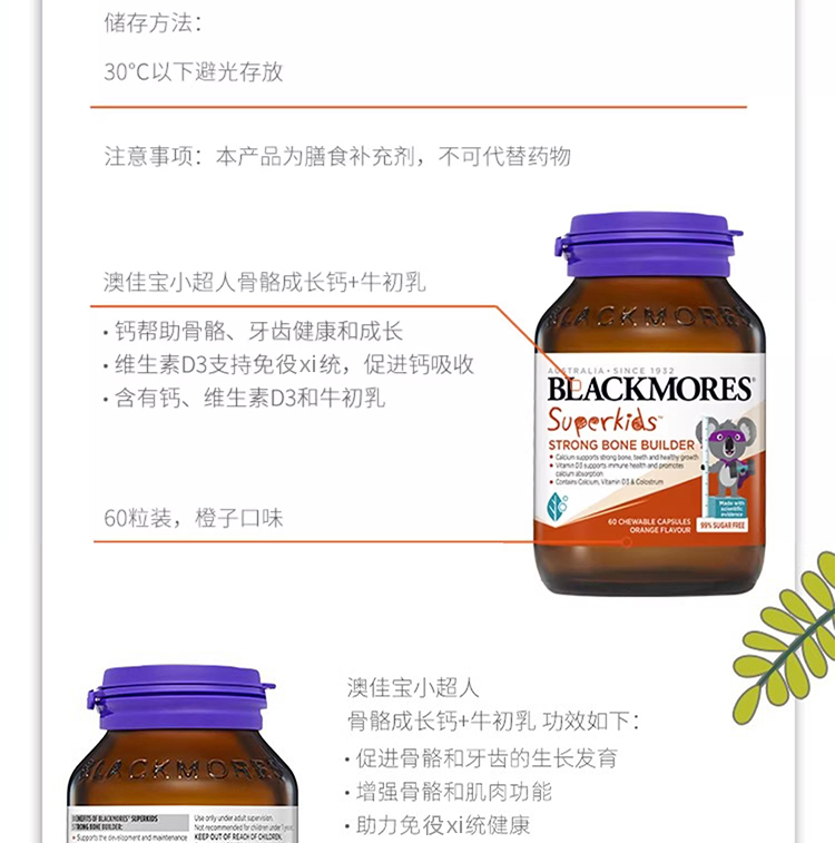 【保税仓】Blackmores澳佳宝小超人骨骼成长钙牛初乳咀嚼胶囊60粒/瓶