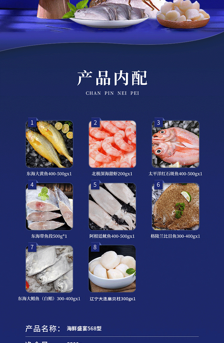 丁小宴海鲜盛宴568型 2800g【实物/卡券】