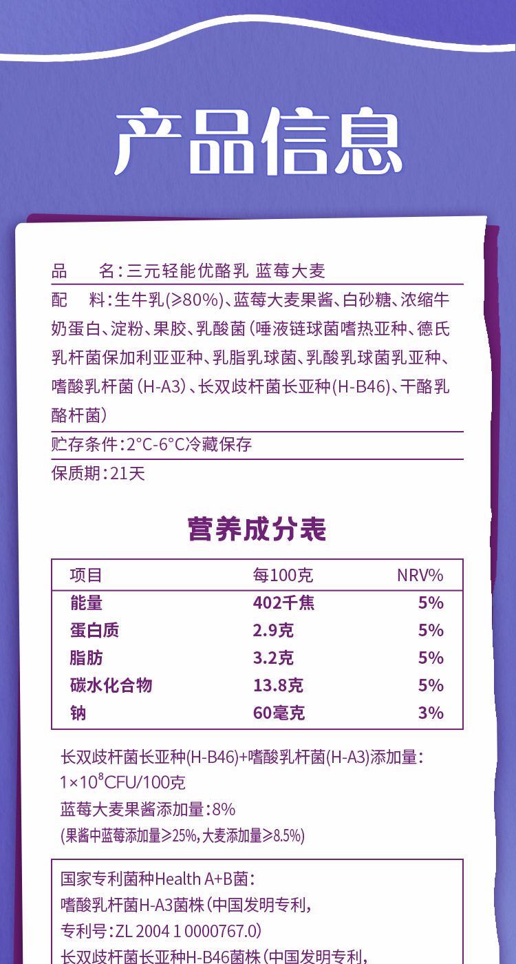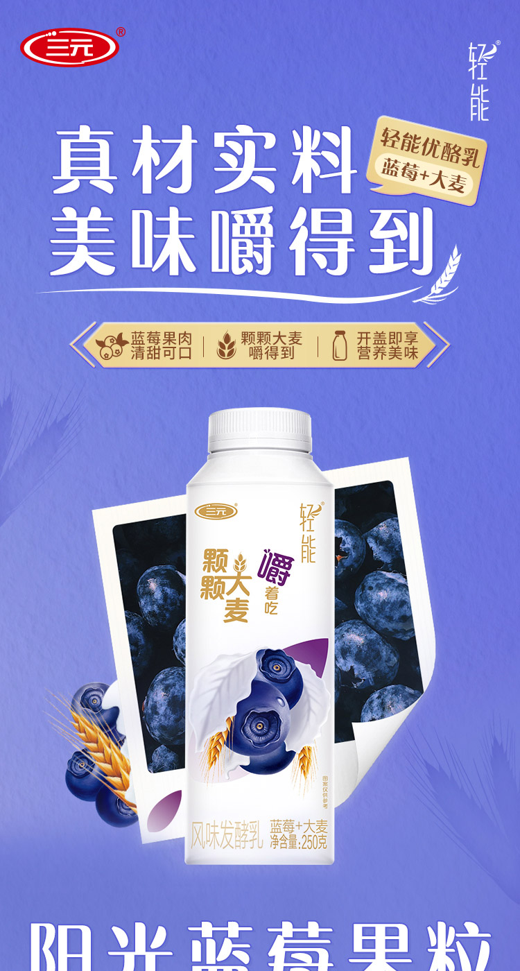 【自提-低温】轻能风味发酵乳-蓝莓+大麦250g*3