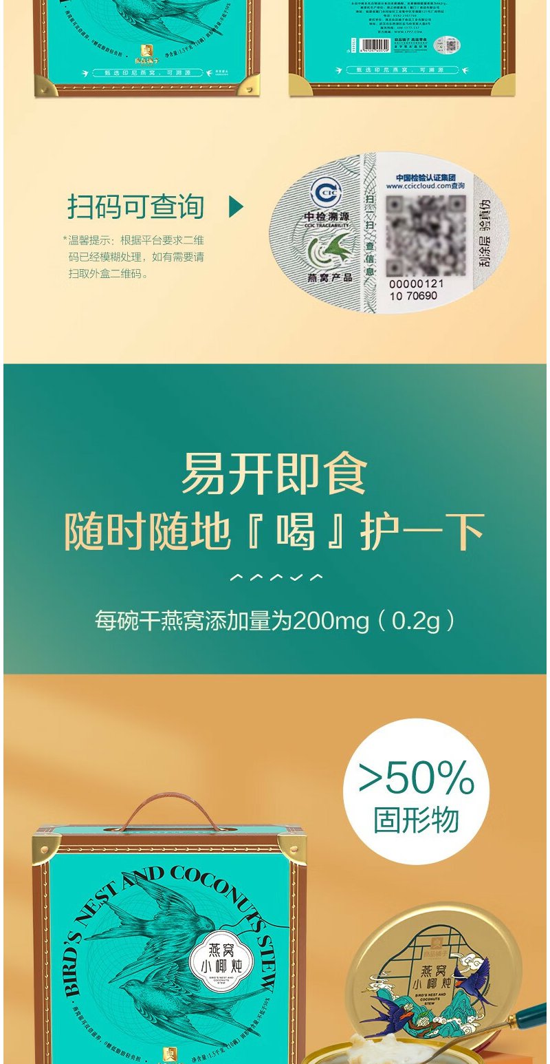 良品铺子 燕窝小椰炖 常温即食燕窝礼盒 150g*10/盒