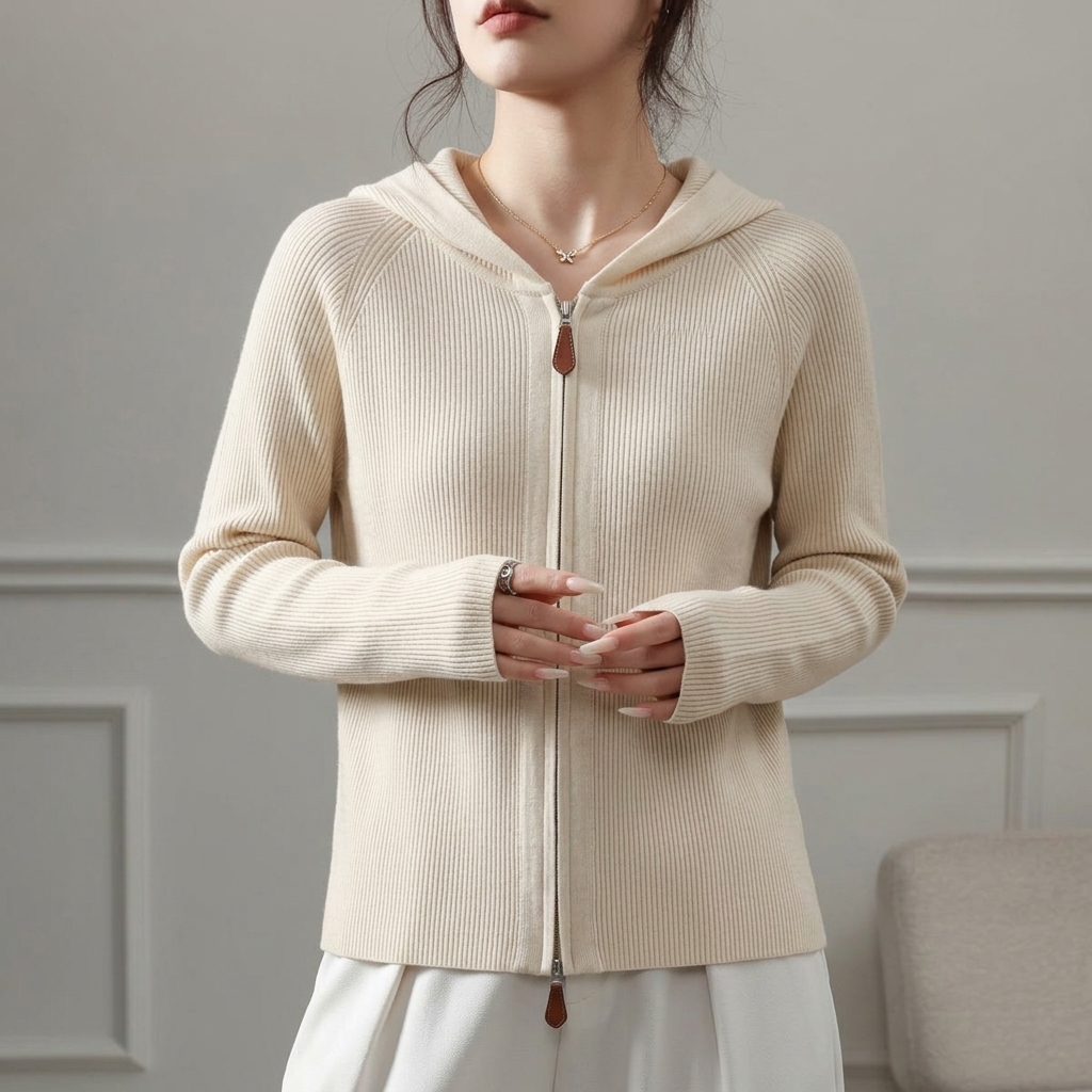 北美小动物系列~半高领双拉链开衫毛衣女宽松加厚外套XDW250502