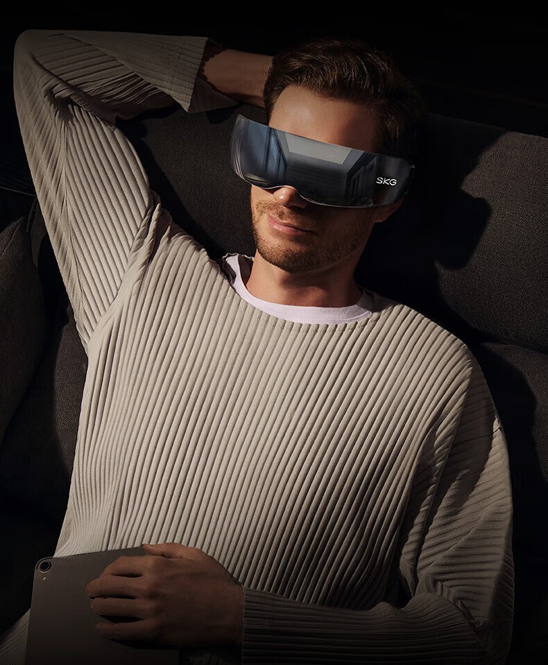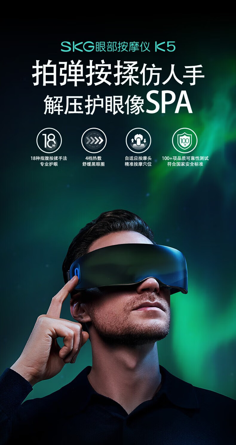 SKG眼部按摩仪护眼仪眼睛点震按摩器眼保仪太阳穴按摩眼罩音乐蓝牙 情人节实用毕业礼物送老师男女友 K5 银镜蓝 心选到家