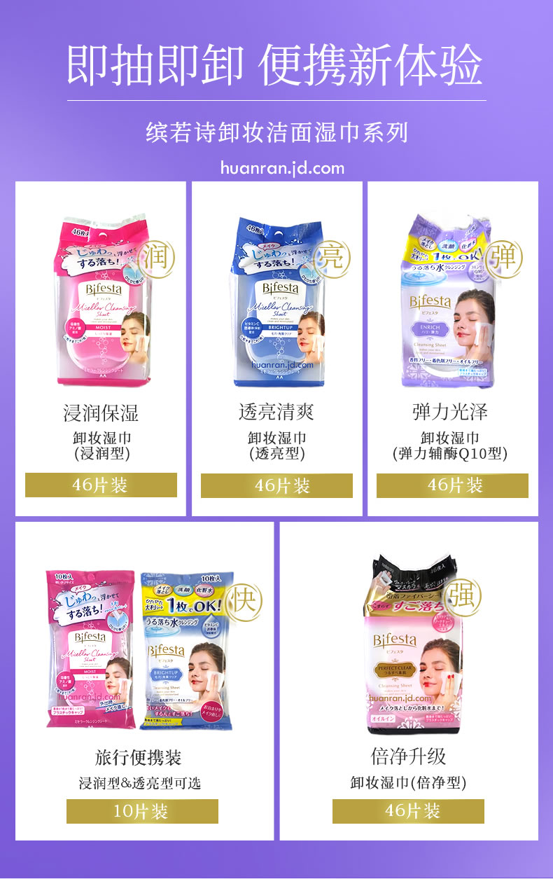 Bifesta缤若诗 曼丹高效保湿卸妆湿巾免洗眼唇卸妆棉 46枚(新包装)