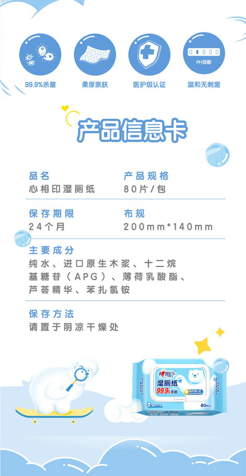 心相印 湿厕纸 私处清洁杀菌湿巾 80片×5包 XCY080+P2