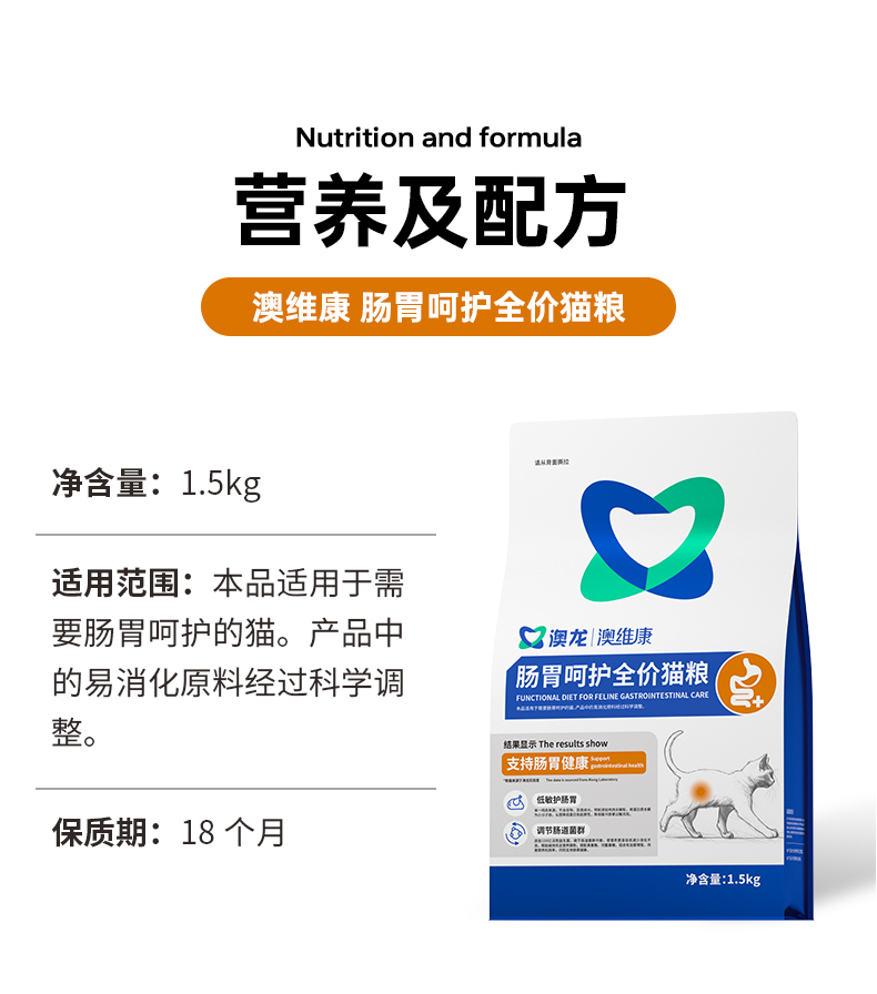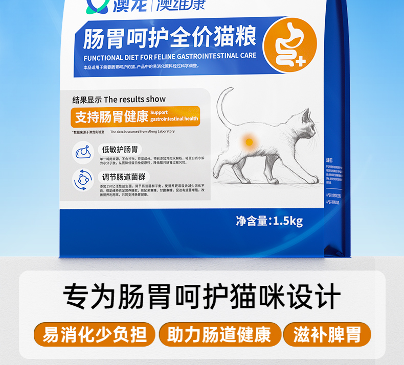 澳龙澳维康肠胃呵护全价猫粮1.5kg