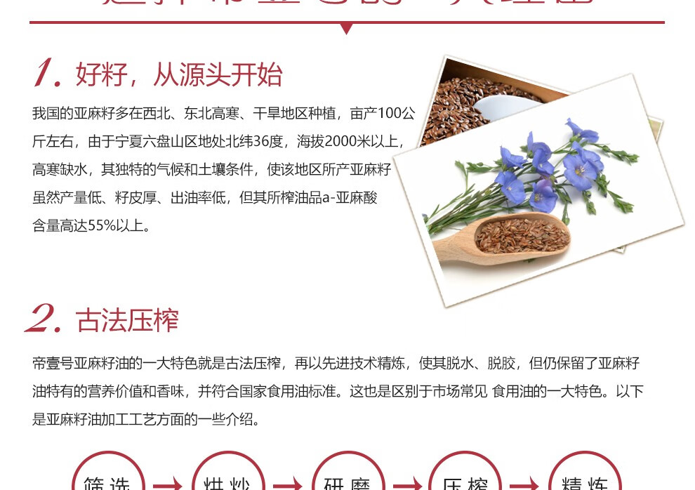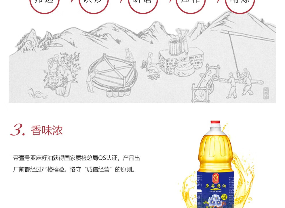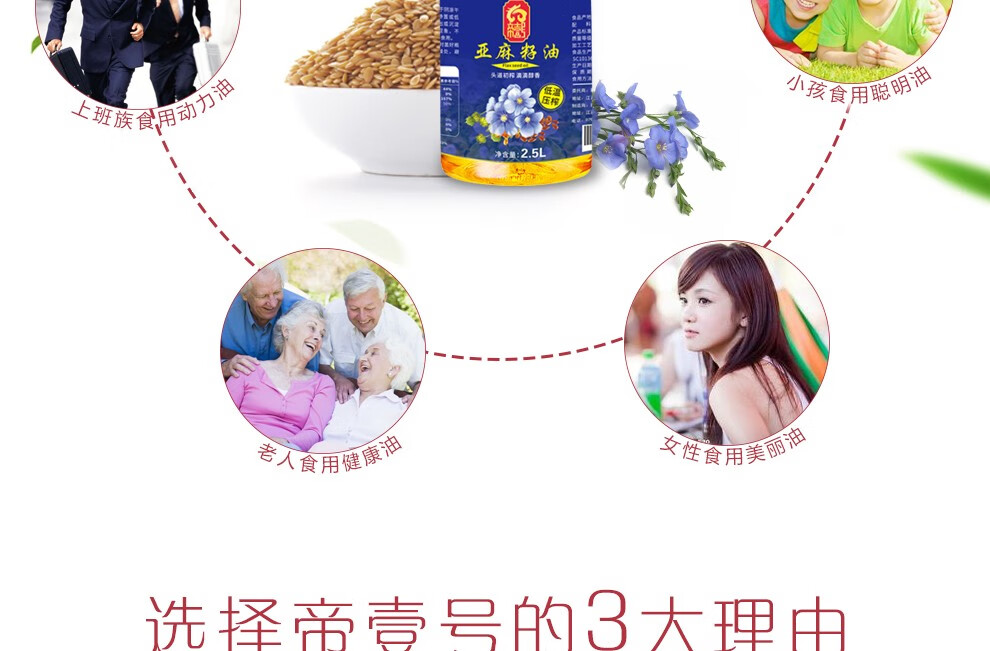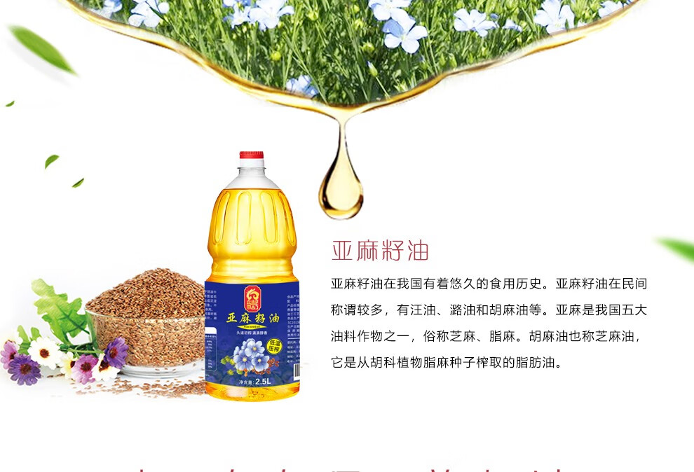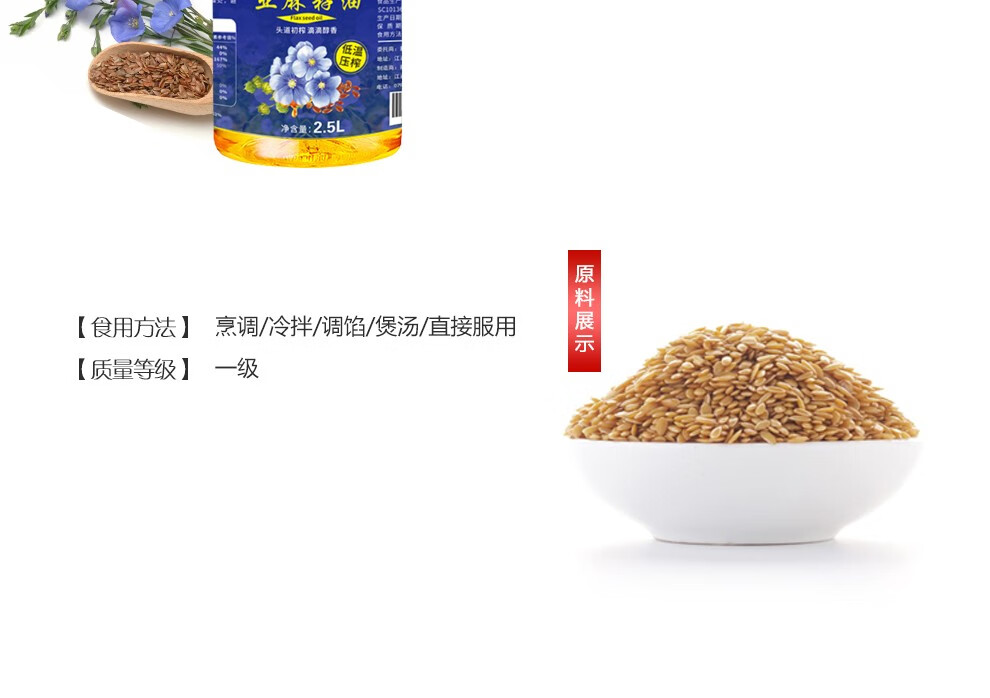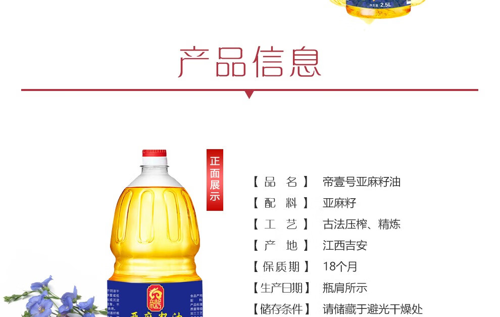 帝壹号 一级亚麻籽油2.5L 低温压榨胡麻油
