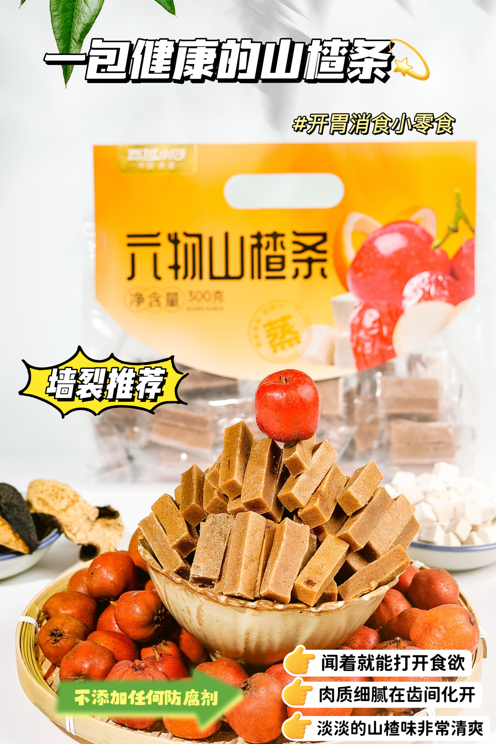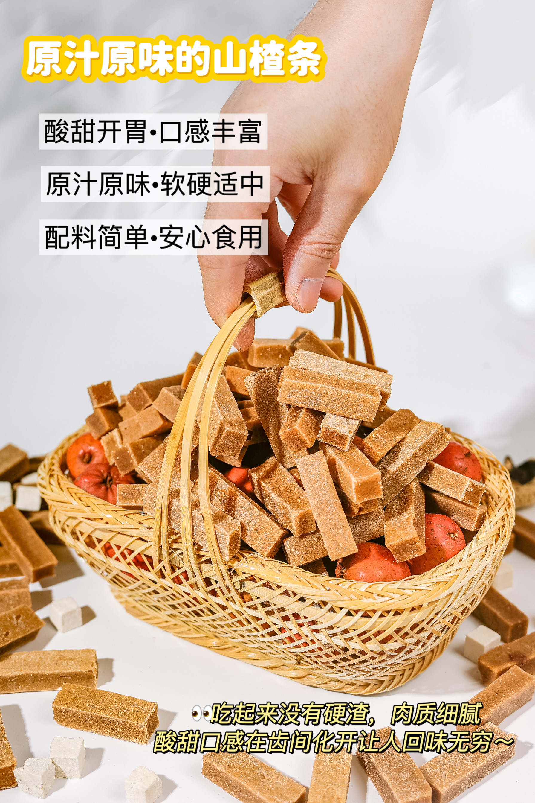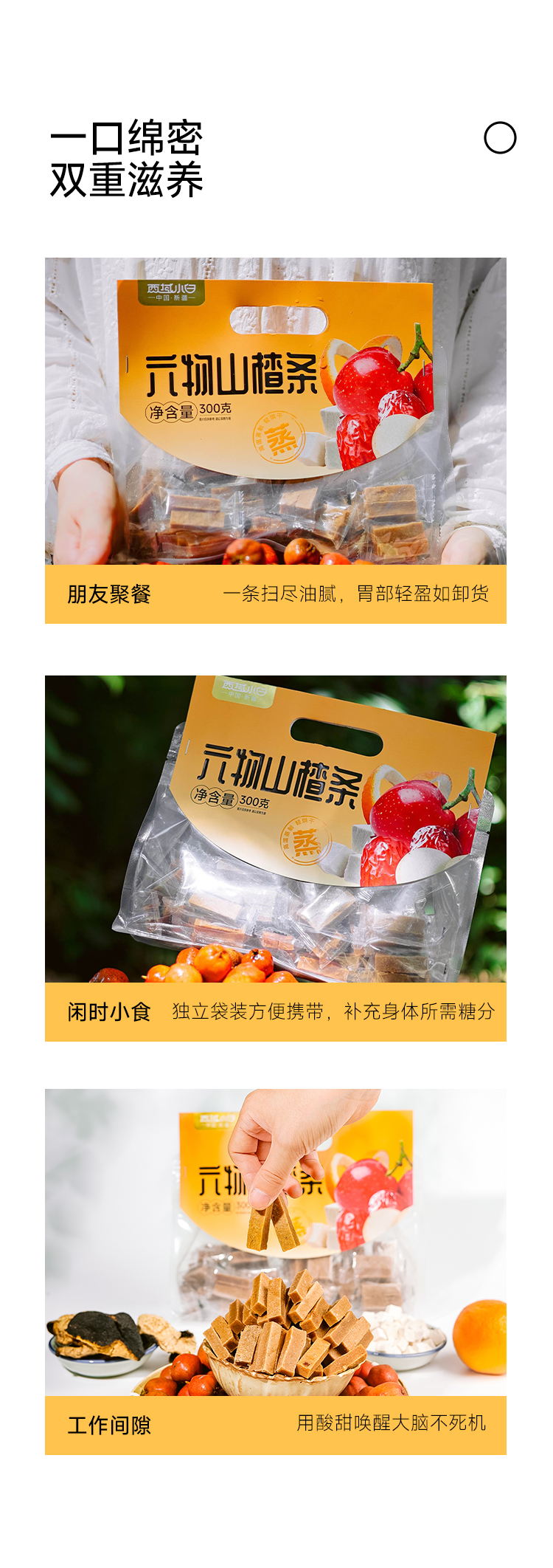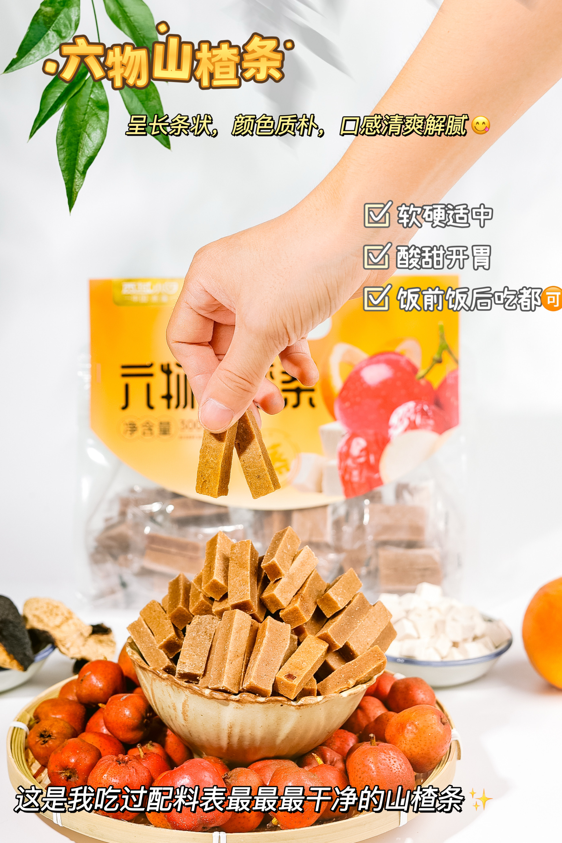 酸甜营养【六物山楂条】配比了橙皮、红枣、鸡内金、山药、茯苓、陈皮!不含添加剂 ✅ 肉质细腻 清爽解腻无负担