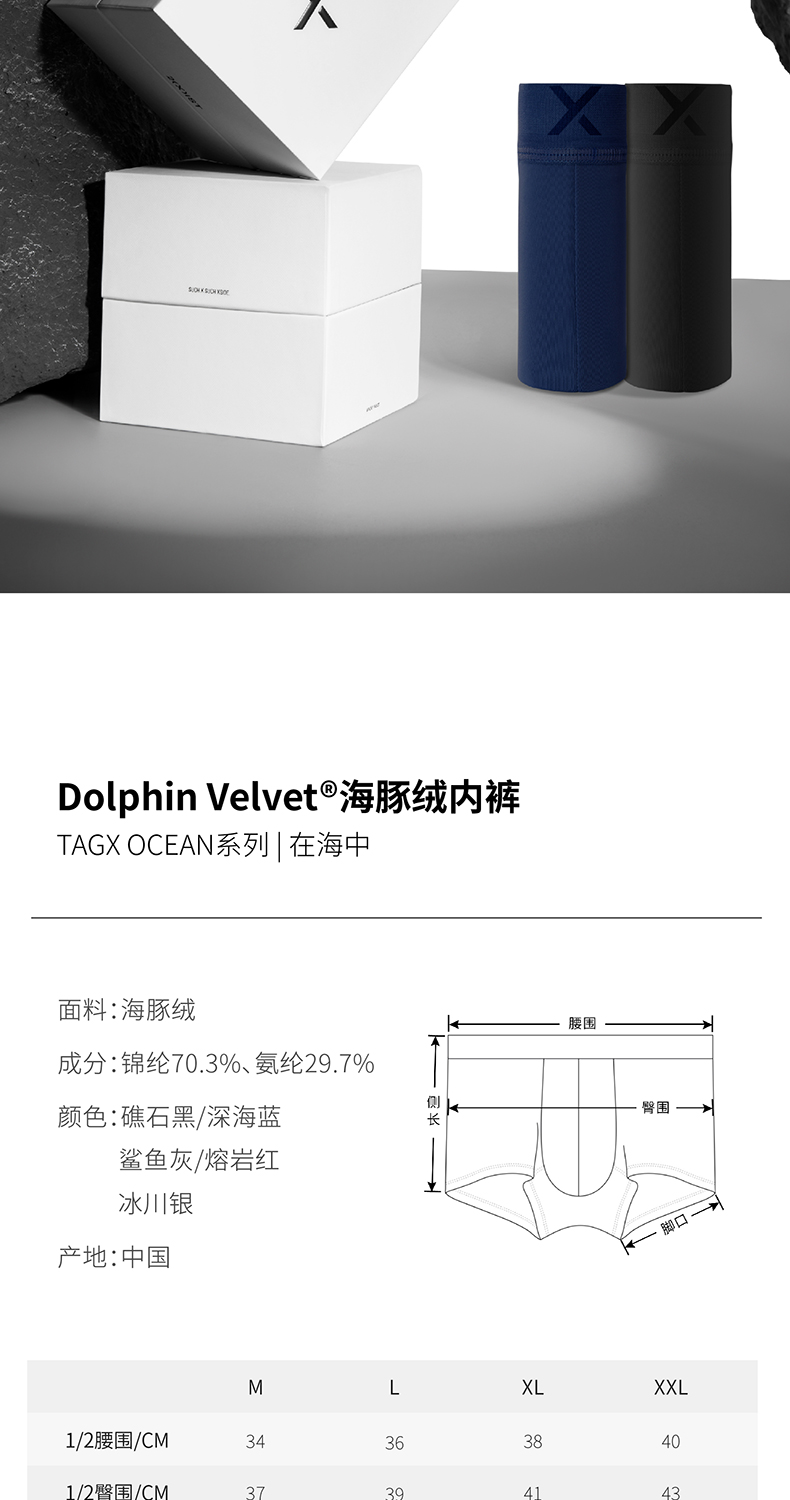 【会员专享兑】TAGX探观 Ocean海洋系列 海豚绒男士内裤 柔软无痕透气 礼盒装