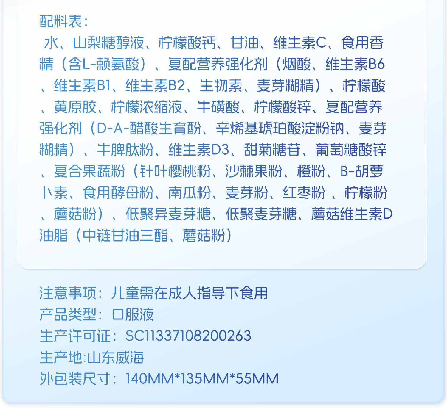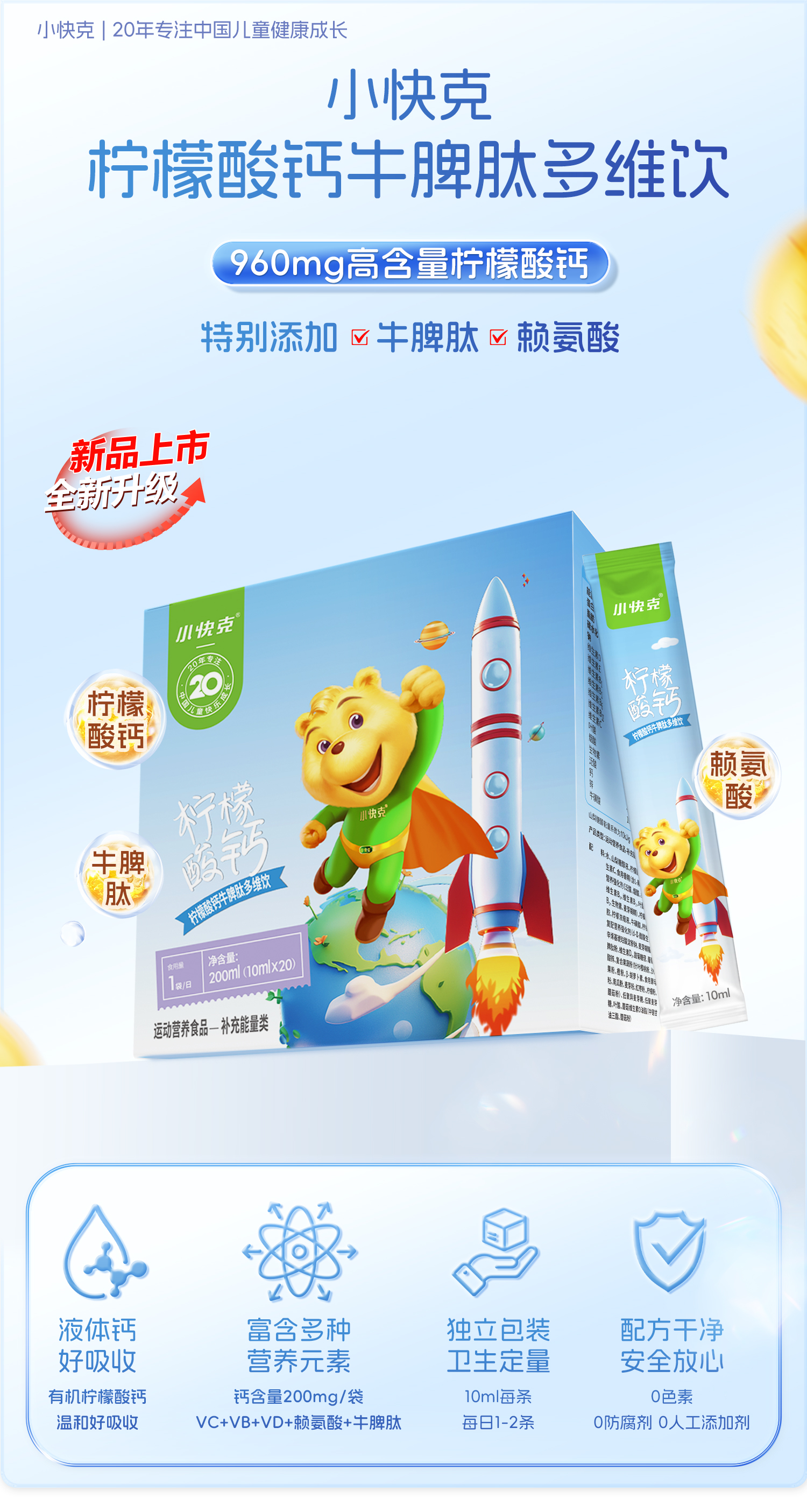 严选 | 小快克·柠檬酸钙牛脾肽多维饮 (10ml/条*20条)/盒 核心营养 一条补足