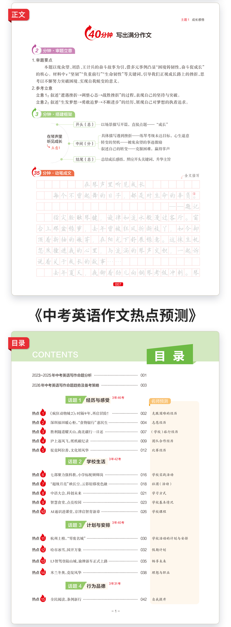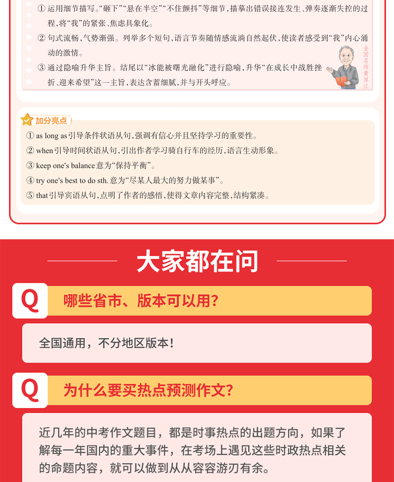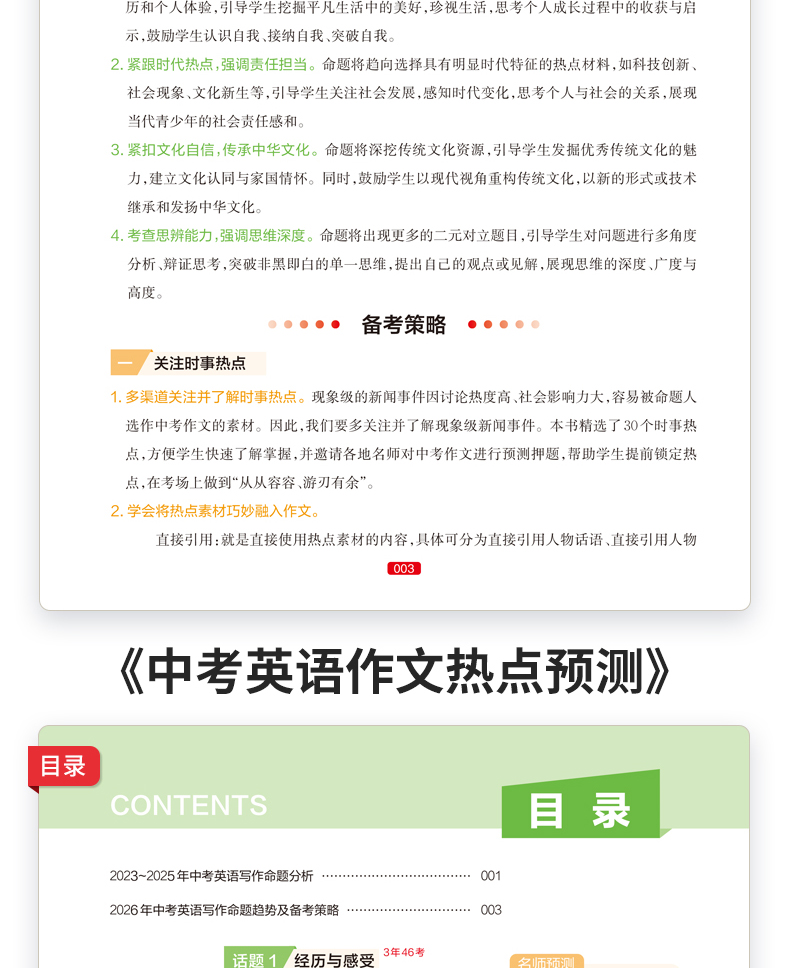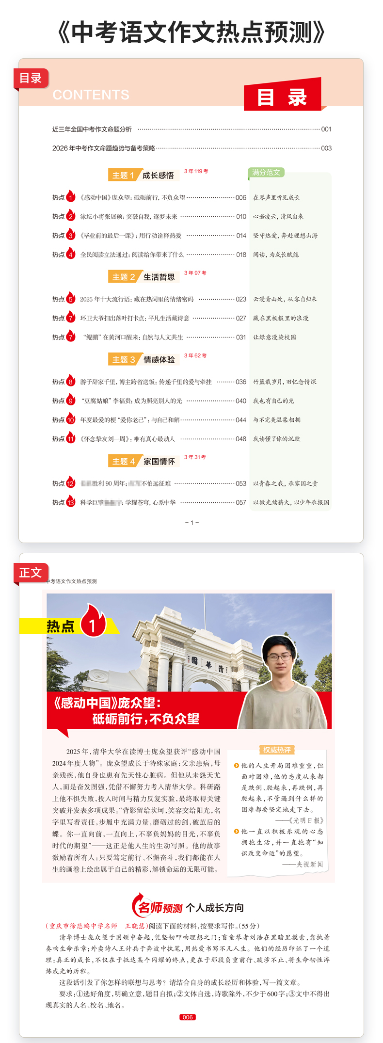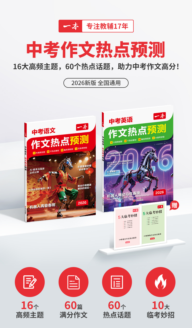 一本26新版【中考押题作文】语文英语热点押题范文赠临考妙招