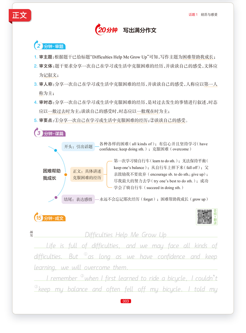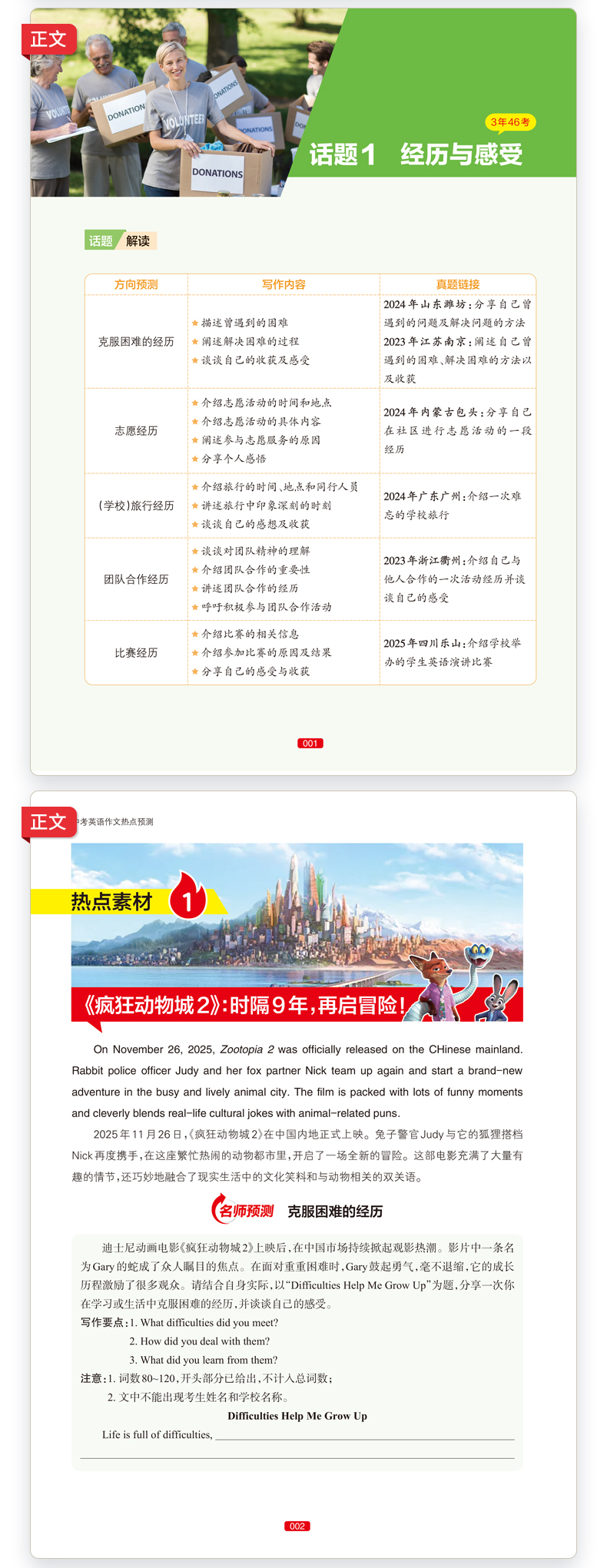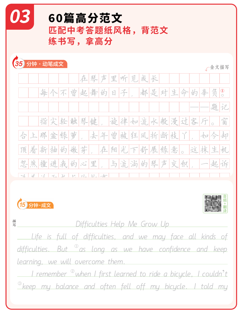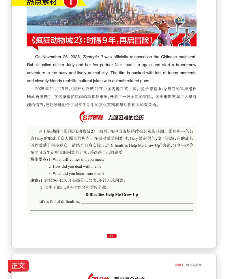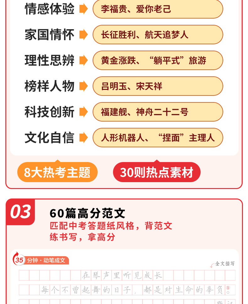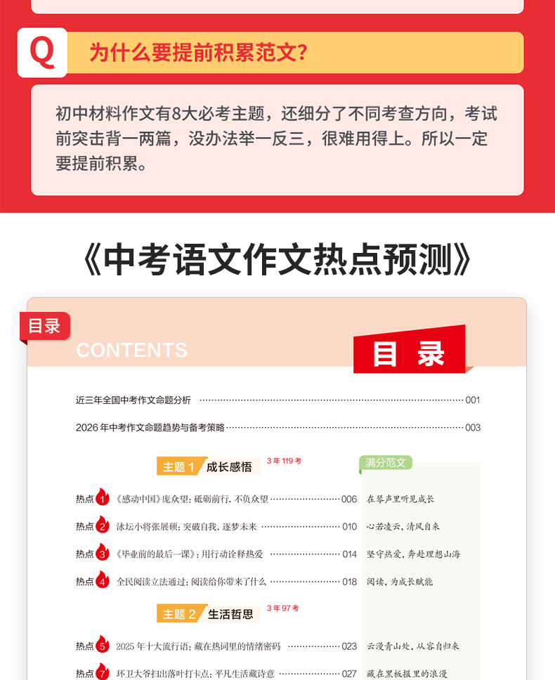 一本26新版【中考押题作文】语文英语热点押题范文赠临考妙招