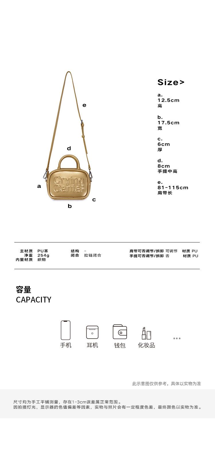 CryingCenter 金色小砖包 手提包斜挎小包 哭喊中心