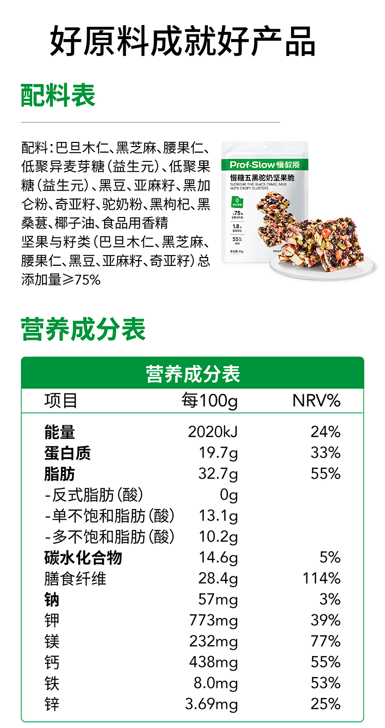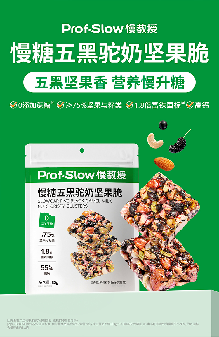 慢教授 | 慢糖五黑驼奶坚果脆 80g(内含13包)