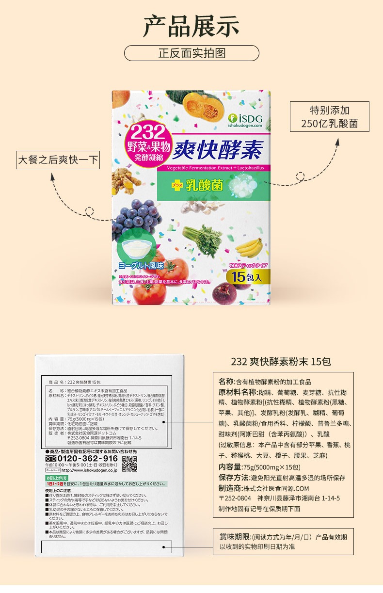 ISDG爽快乳酸菌味酵素粉15条/盒