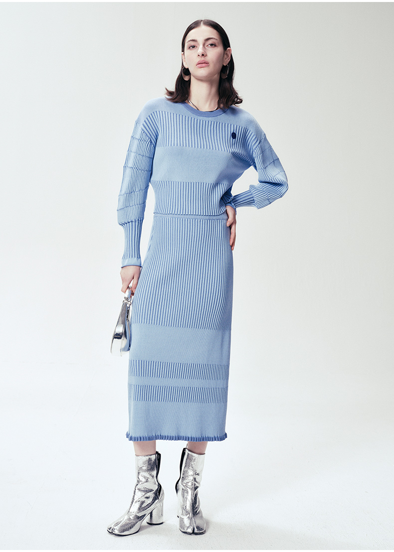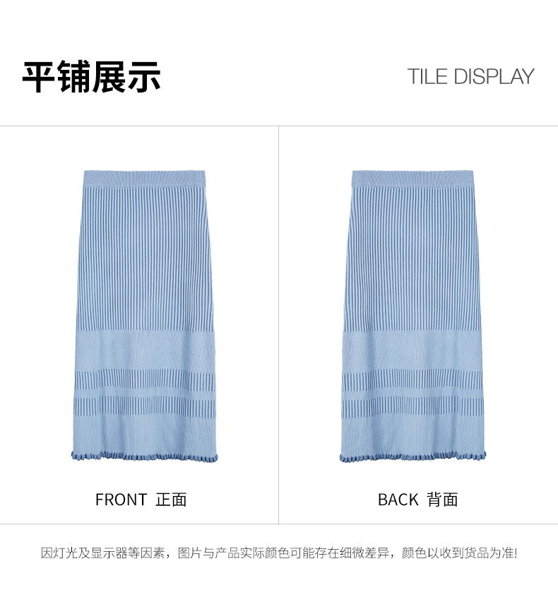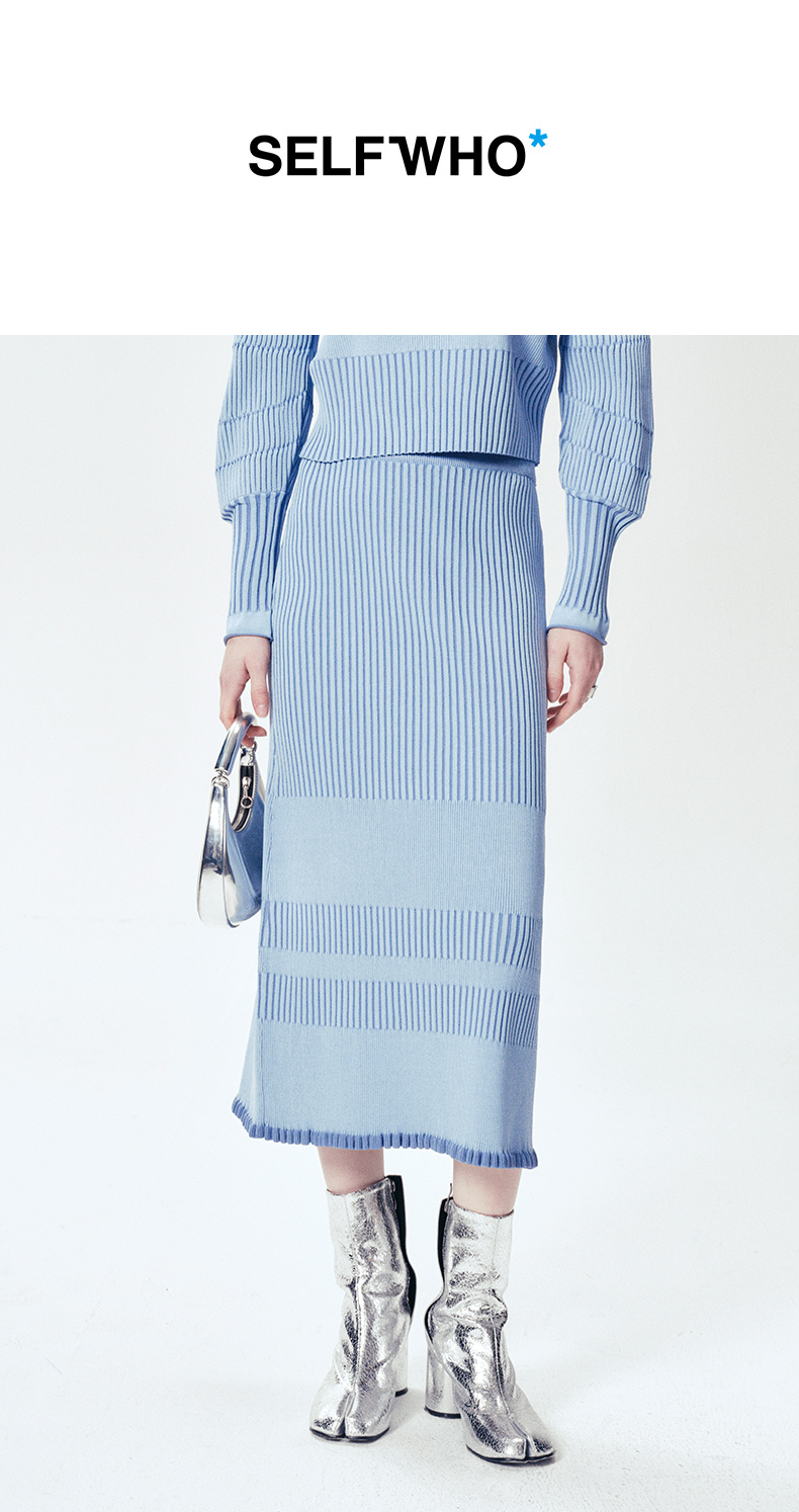 Self Who蓝色条纹针织半身裙女2024春新款宽松直筒休闲设计感裙子