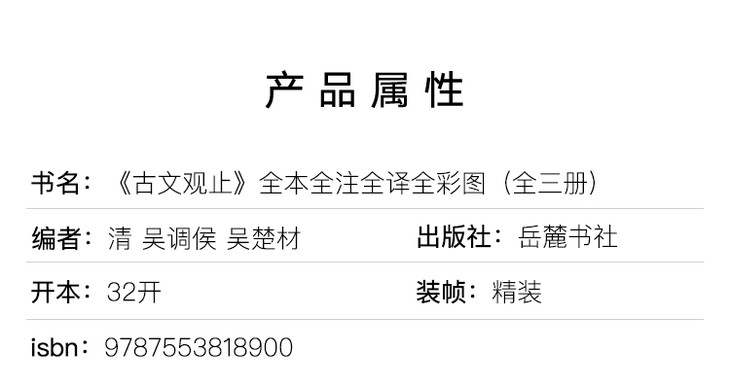 今天推荐的版本也相当独特,是岳麓书社出版的《古文观止》。