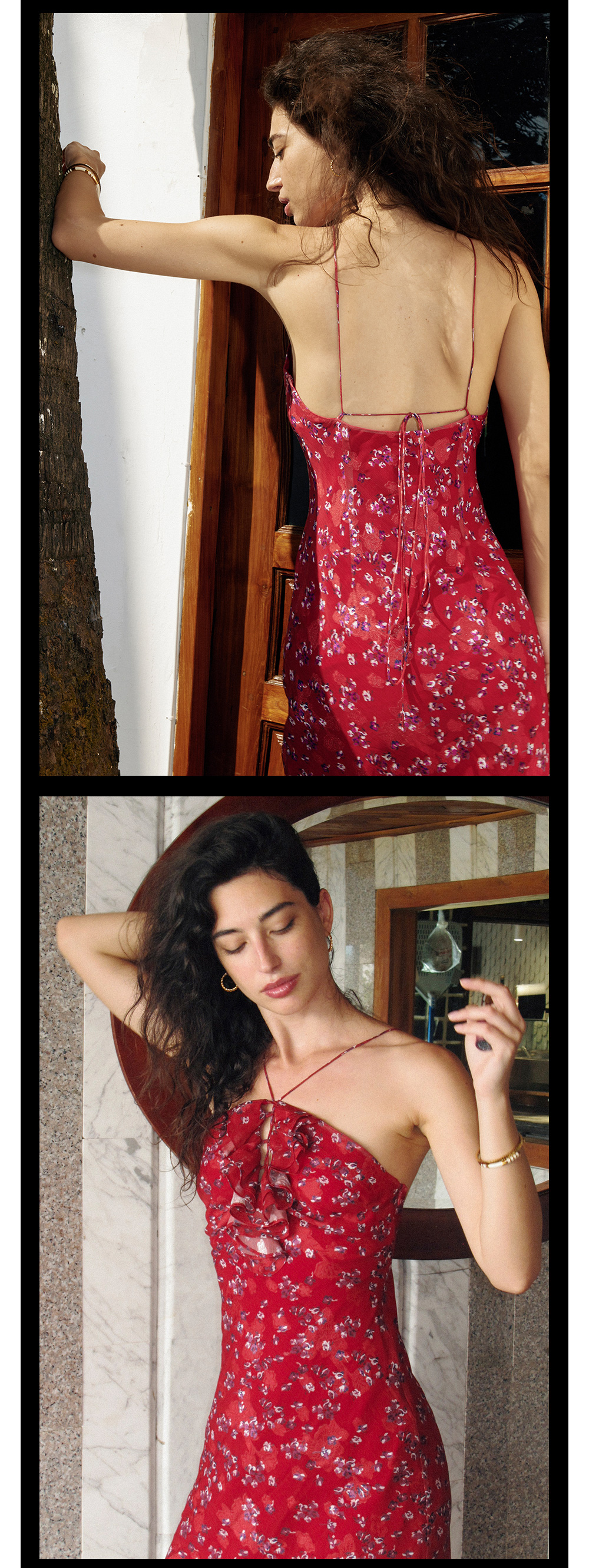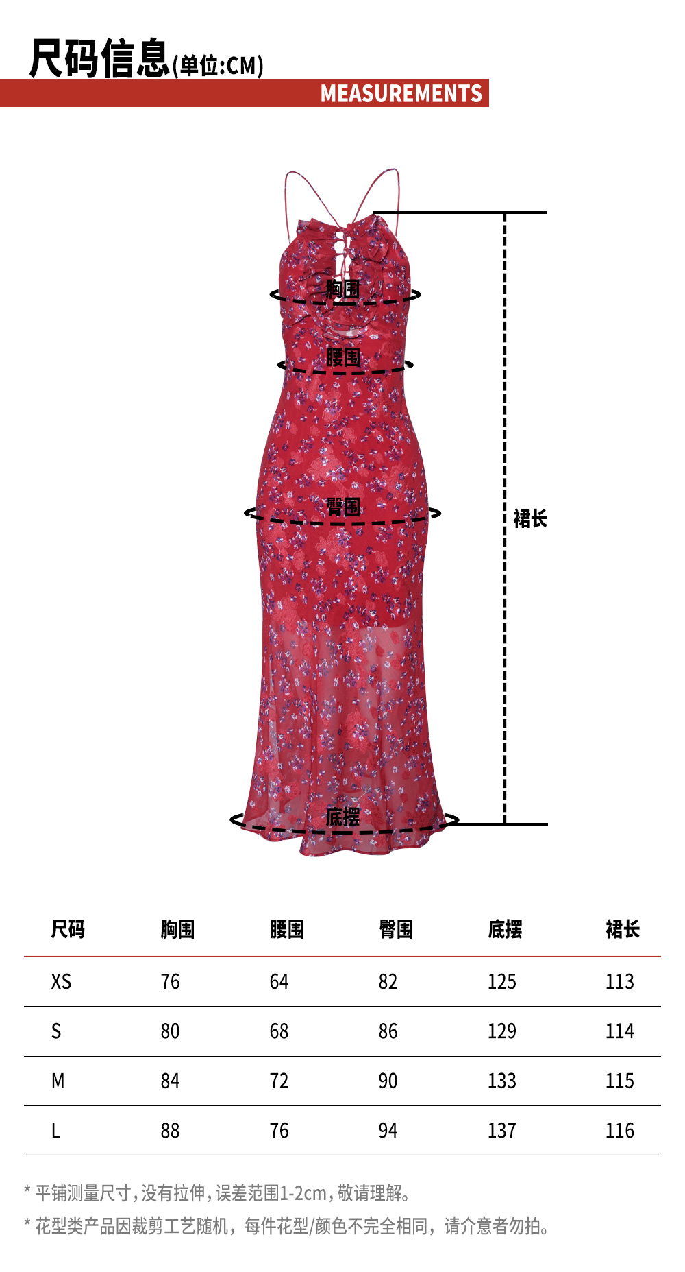 TR她热 情迷西西里 红色碎花印花挂脖荷叶边系带抽绳露背连衣裙