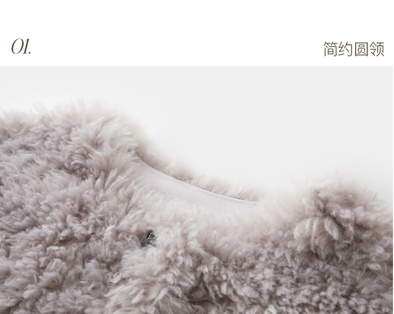 三彩2025冬季新款环保皮草圆领毛毛外套宽松短款仿皮草M