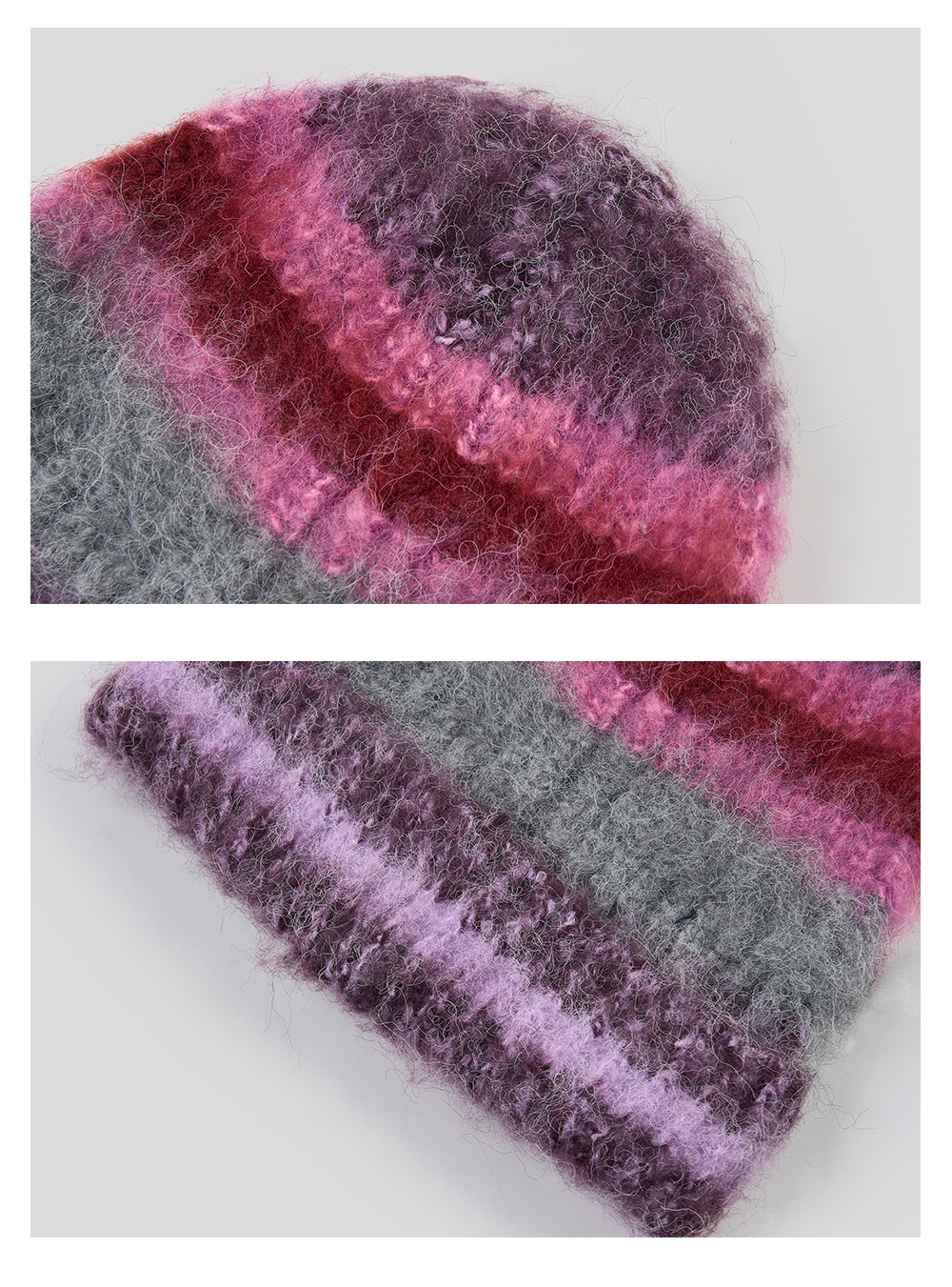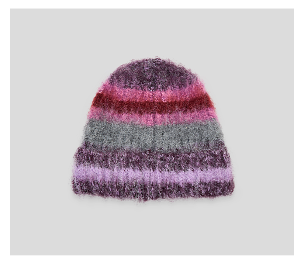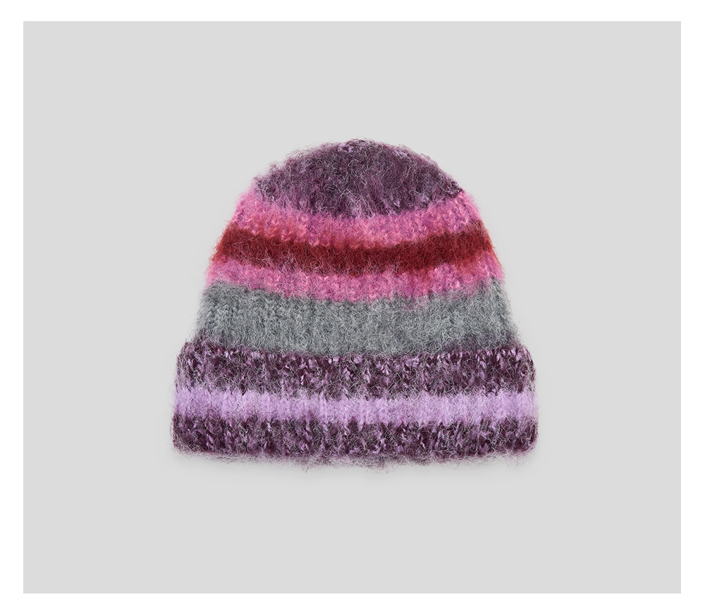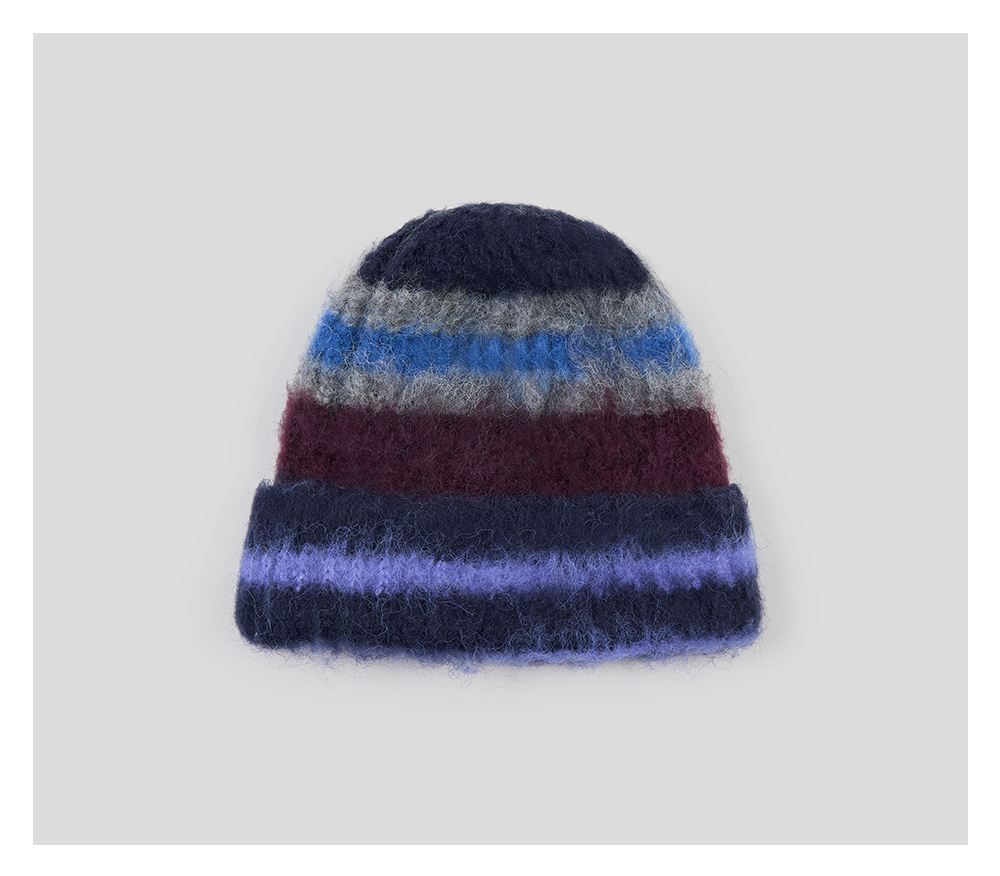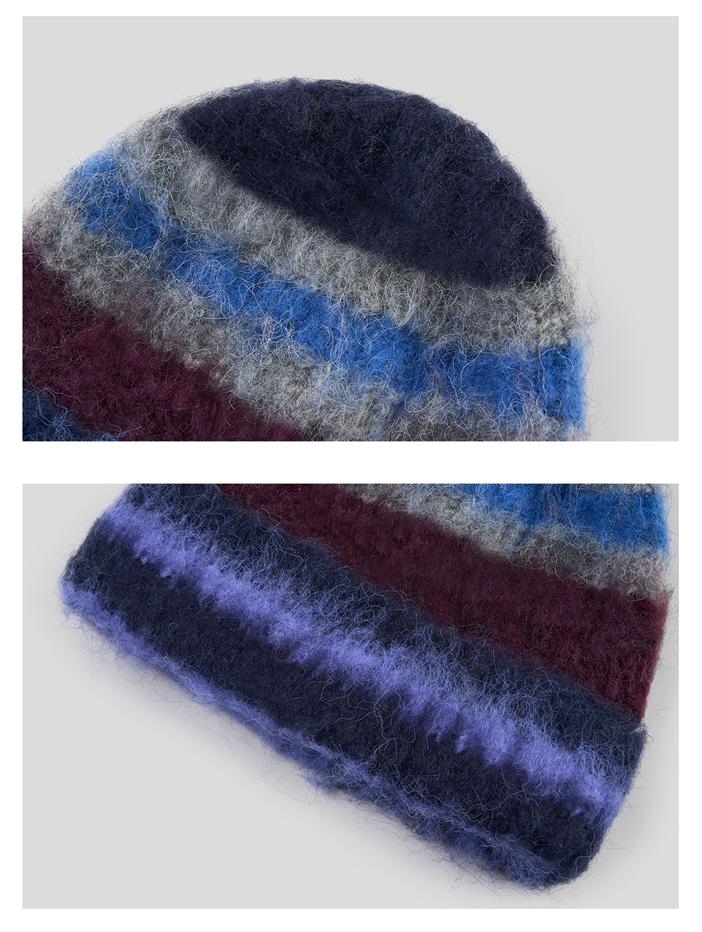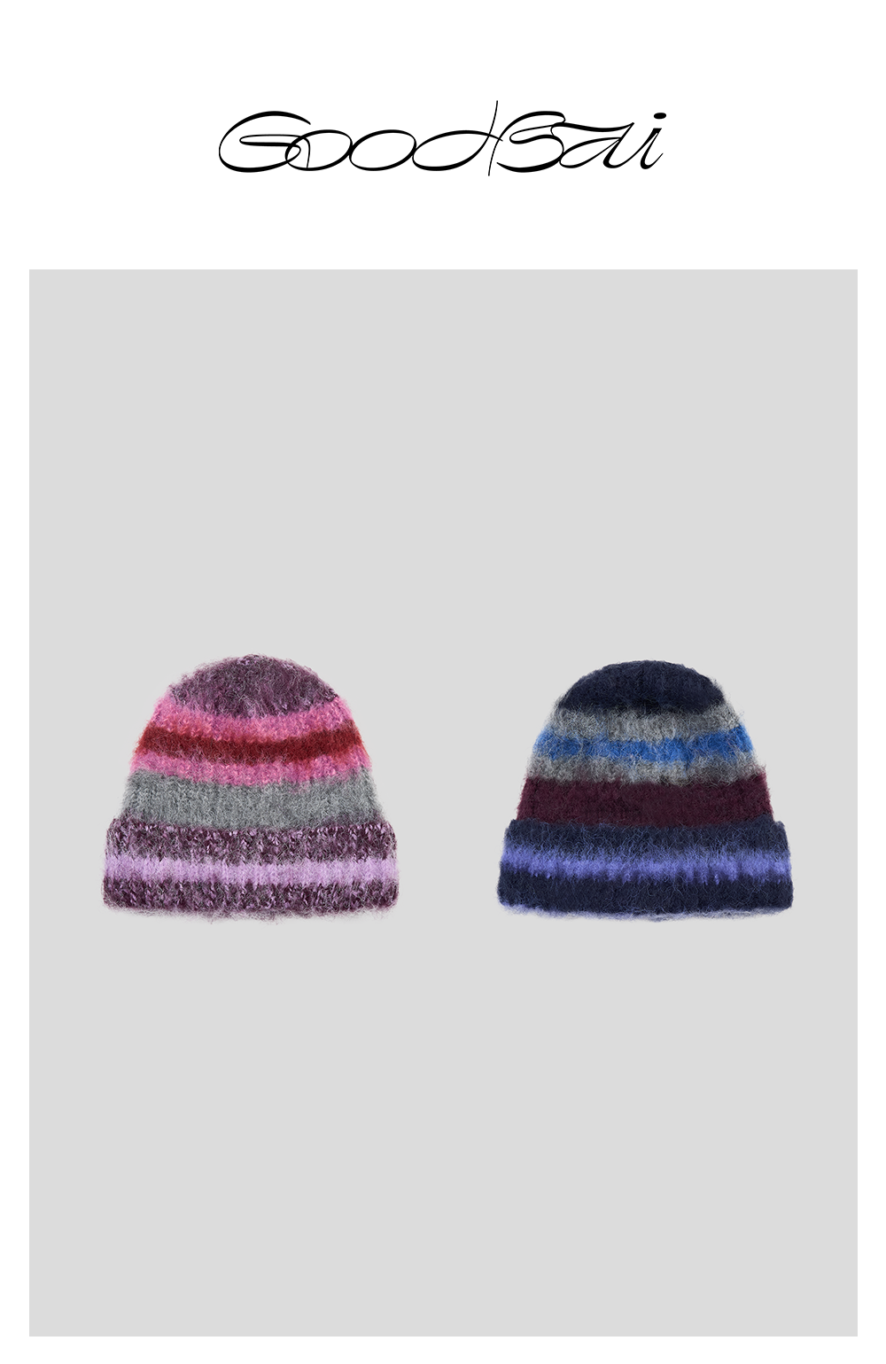 GOODBAI 撞色横条纹翻折圆顶长毛针织帽