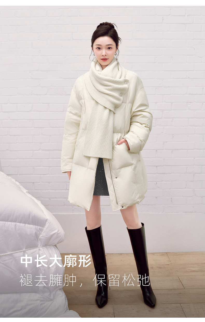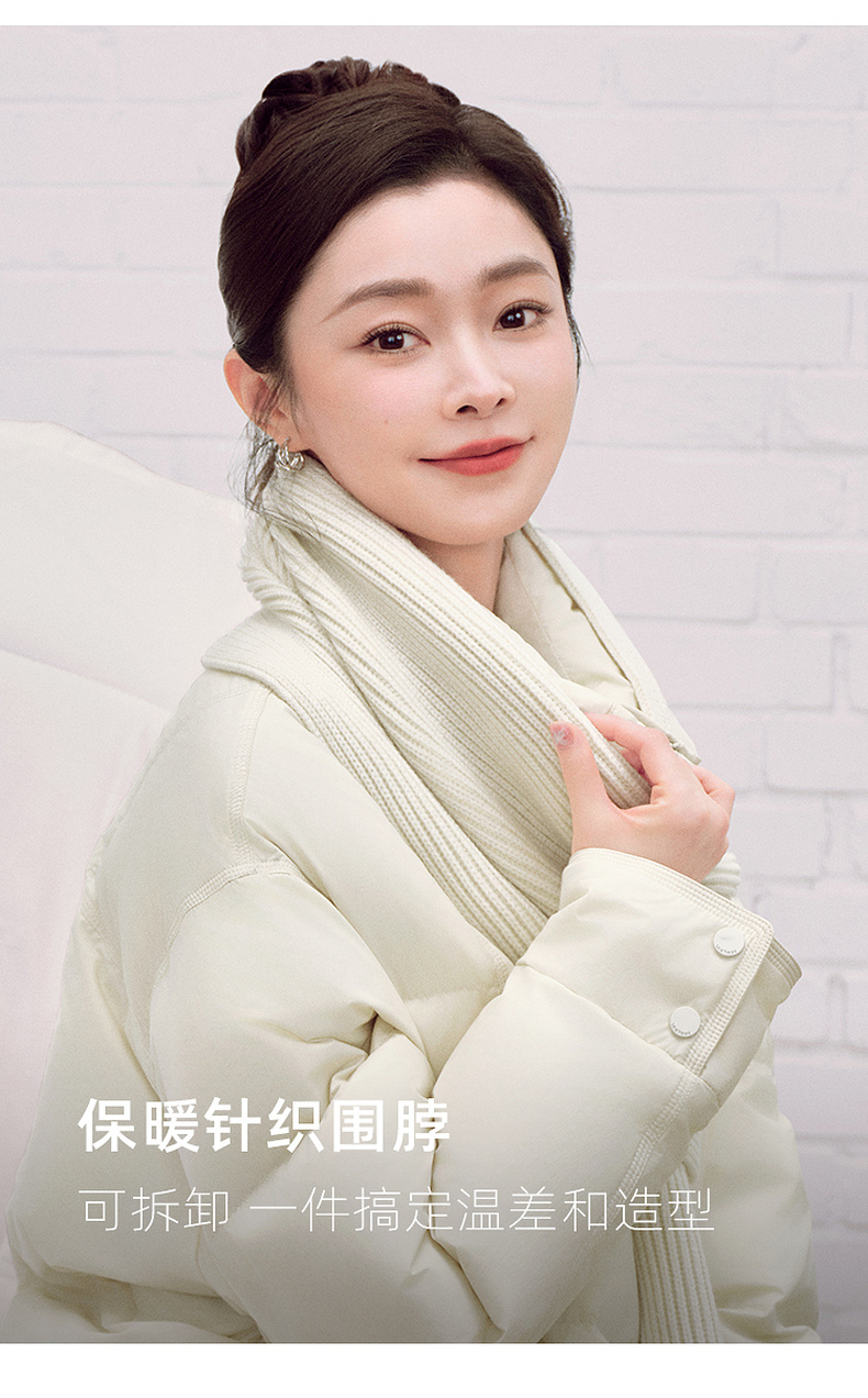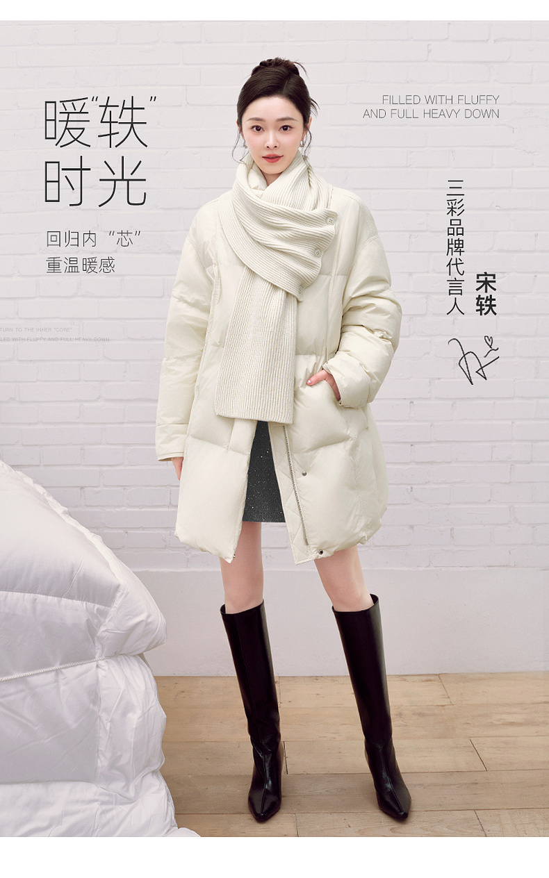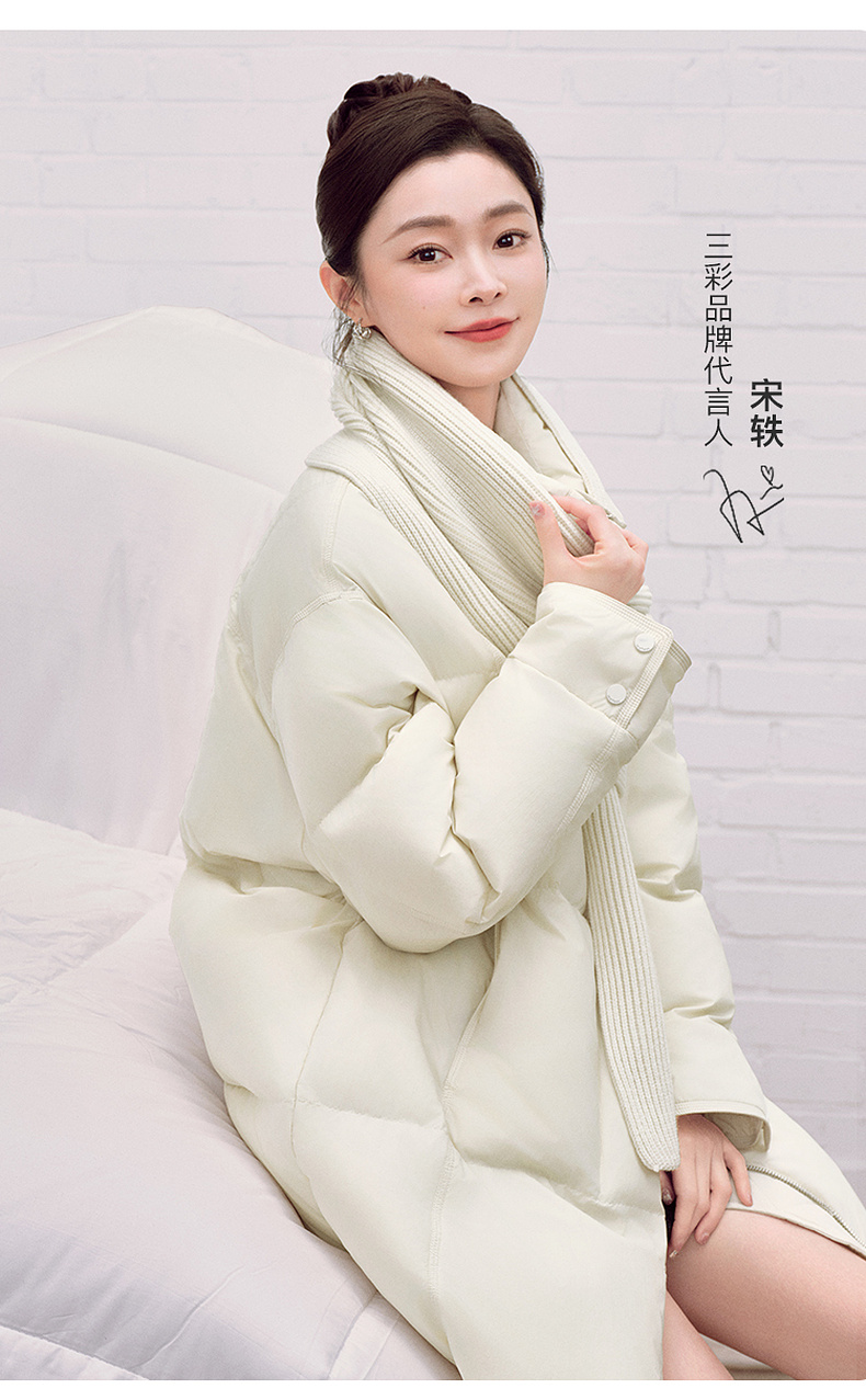 【宋轶同款】[易打理]三彩2025冬季新款围脖羽绒服90白鸭绒宽松中长外套M