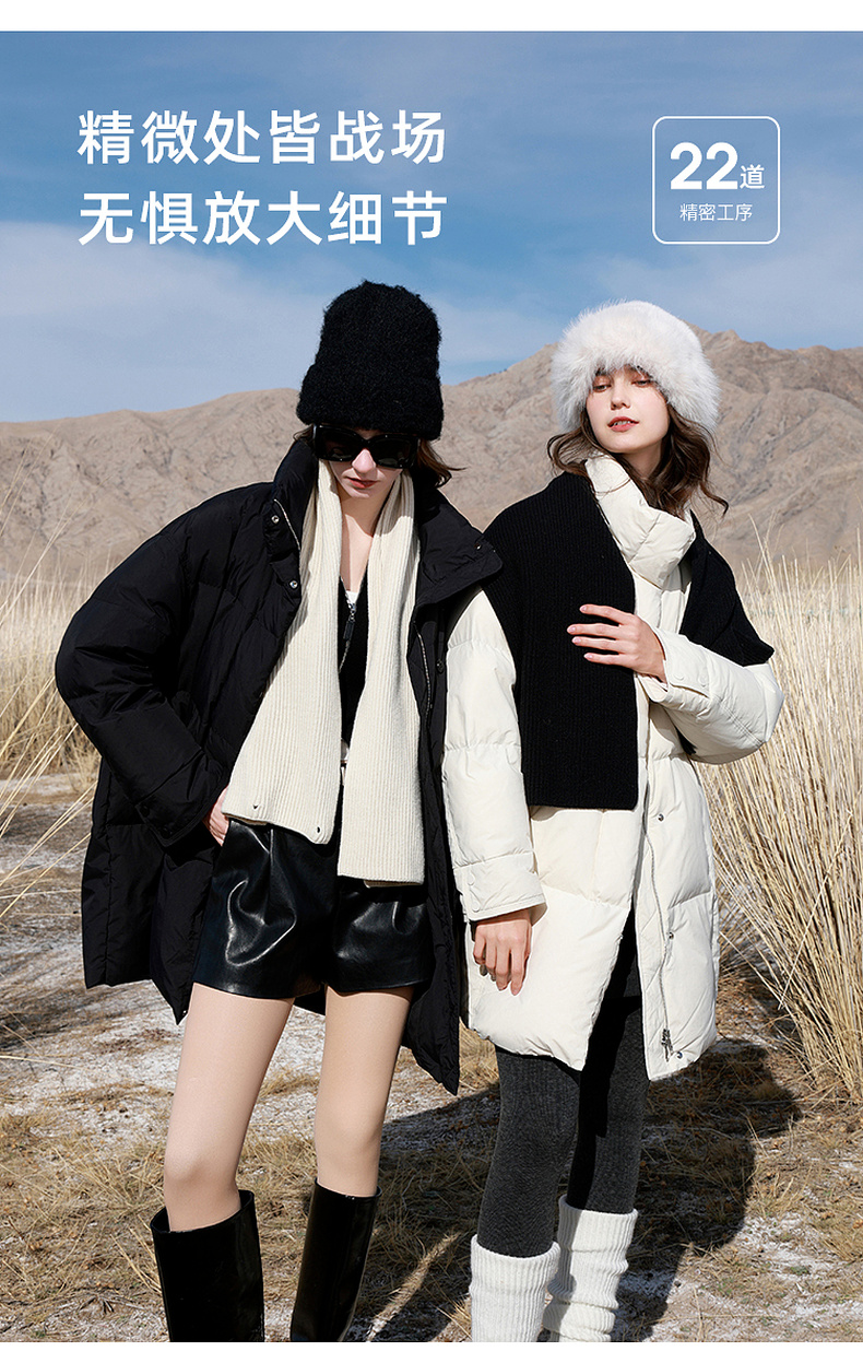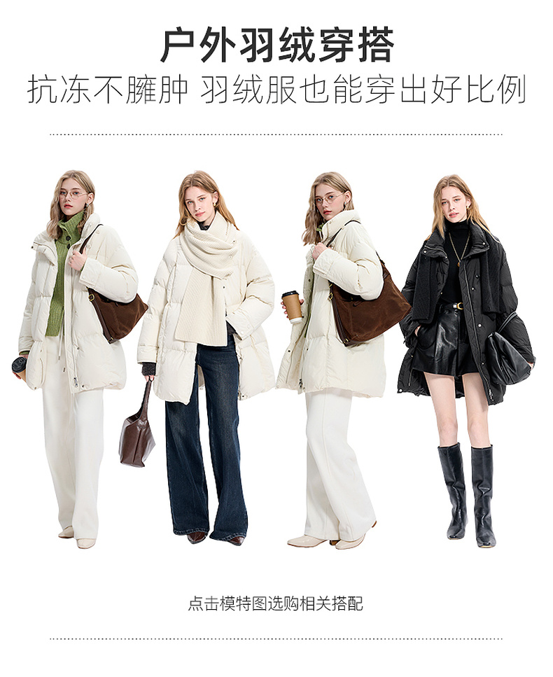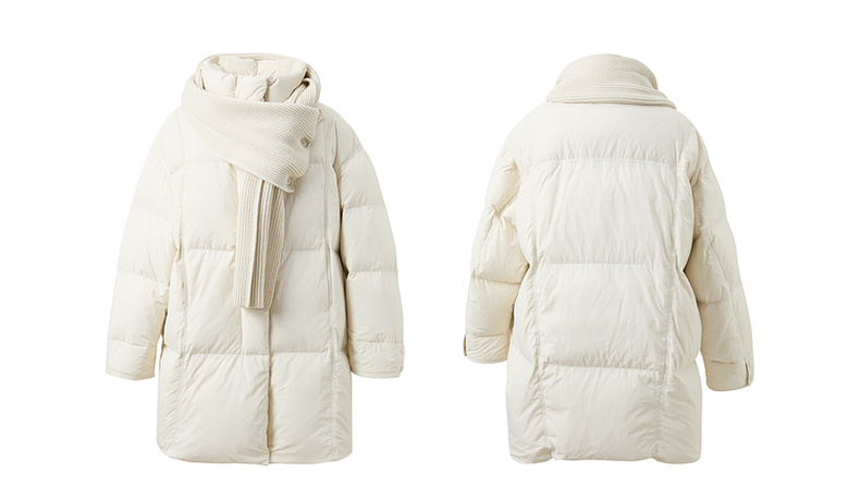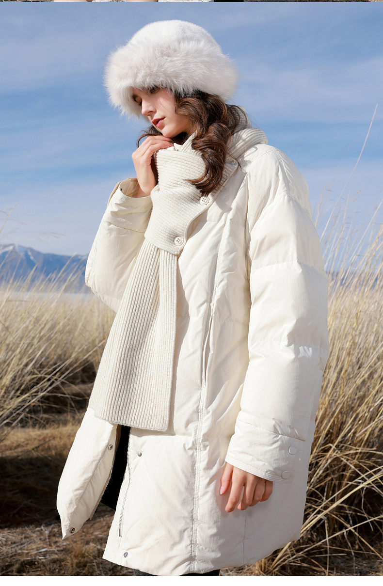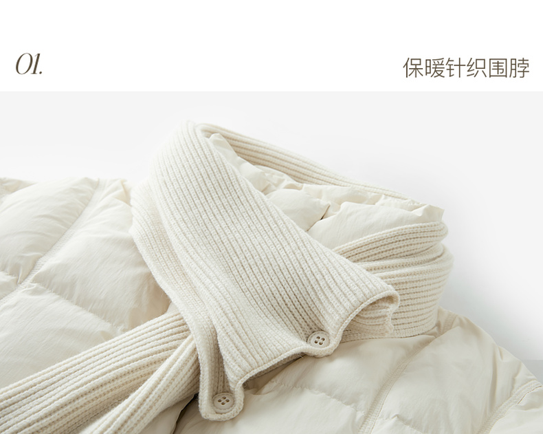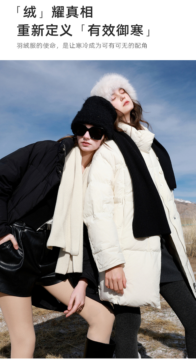 【宋轶同款】[易打理]三彩2025冬季新款围脖羽绒服90白鸭绒宽松中长外套M