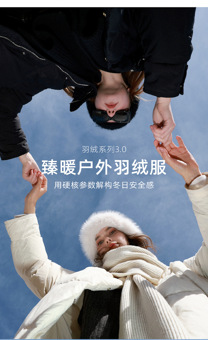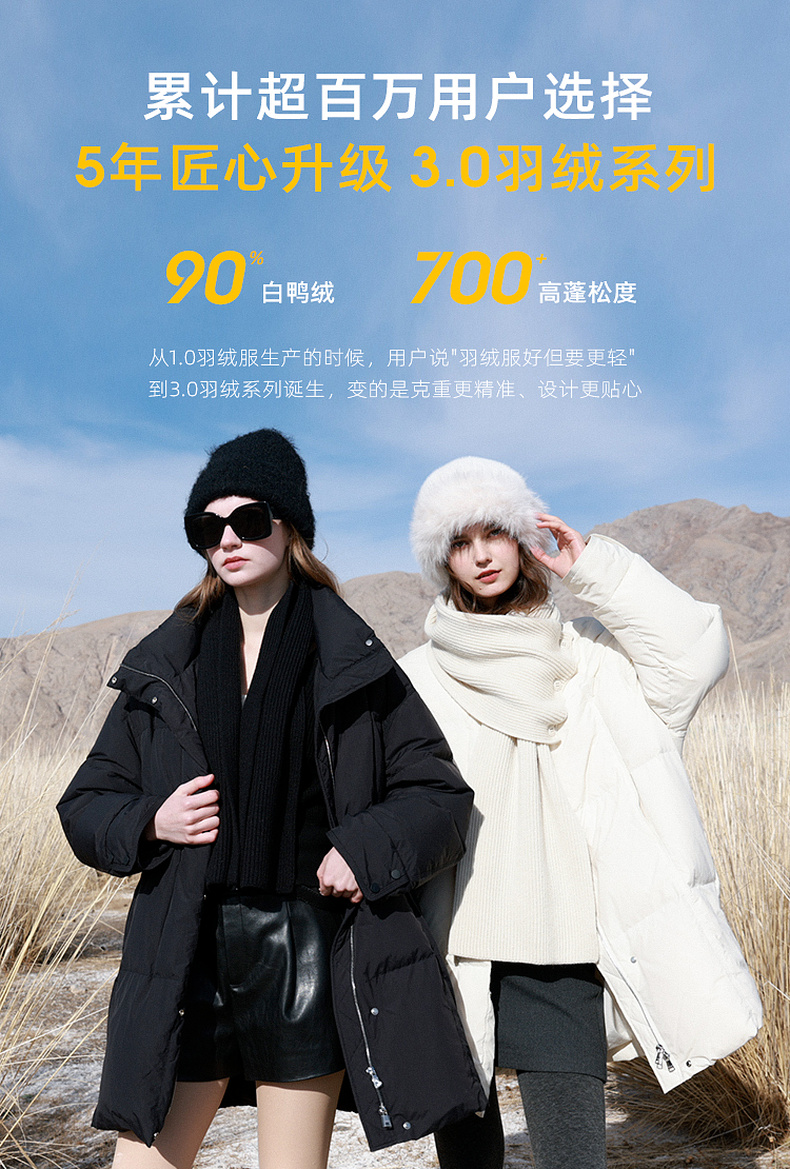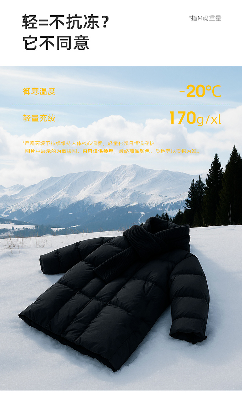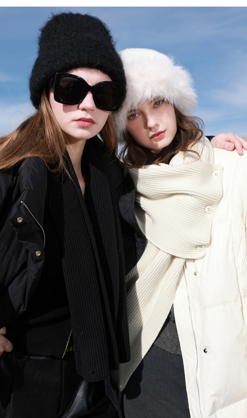 【宋轶同款】[易打理]三彩2025冬季新款围脖羽绒服90白鸭绒宽松中长外套M