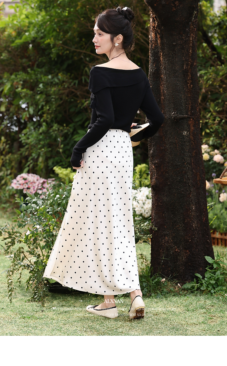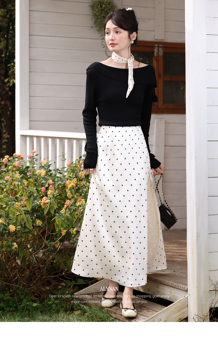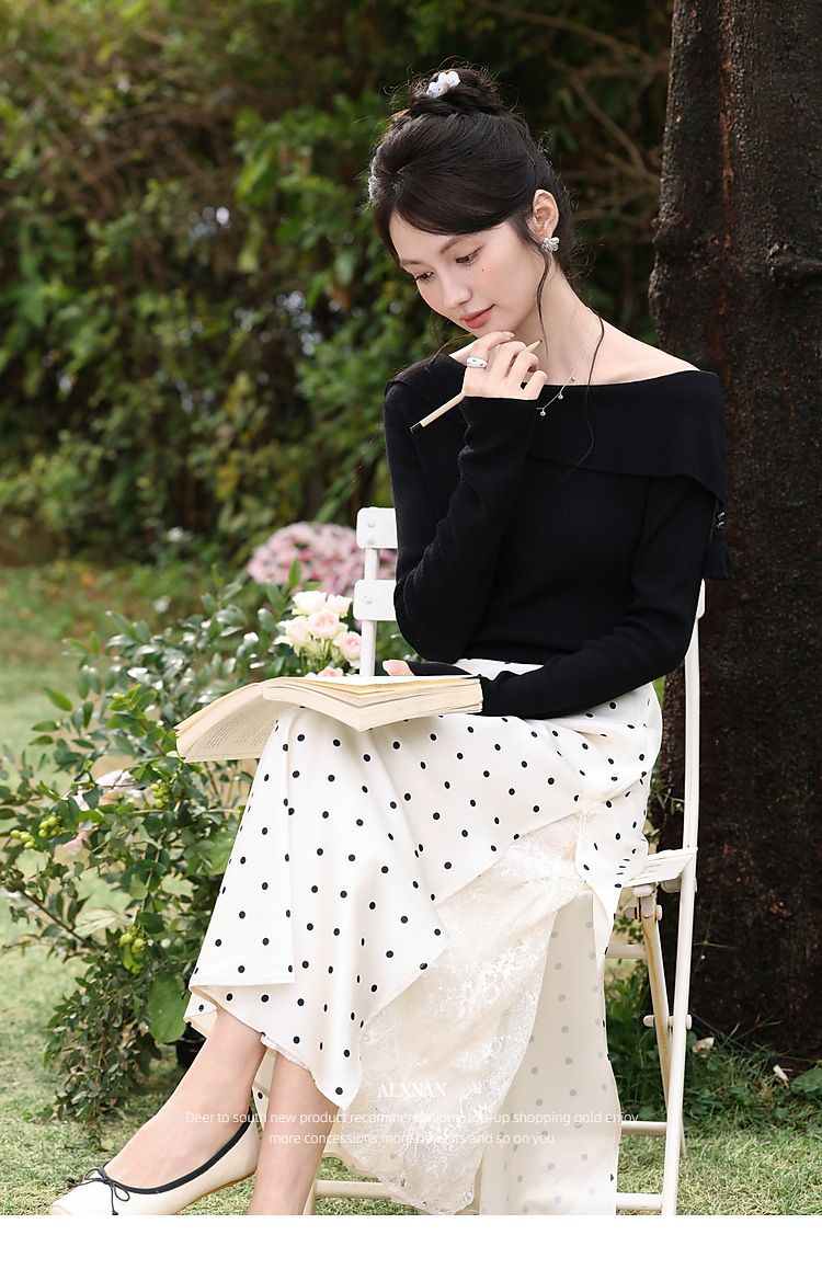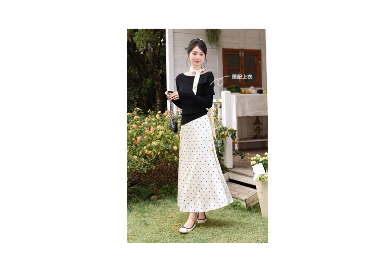 鹿向南「月光梦境」法式杏色波点半身裙女夏显瘦蕾丝拼接A字长裙