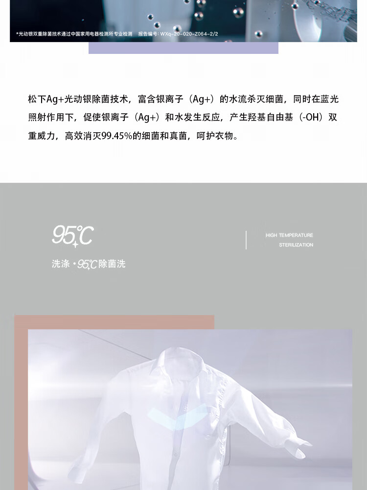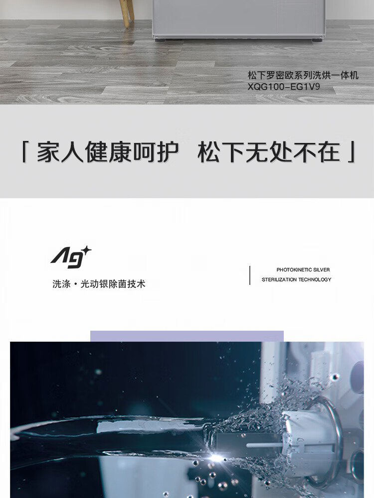 松下(Panasonic)洗衣机全自动10公斤 洗烘一体机 光动银常温除菌不伤衣 除菌除螨 银色 XQG100-EG1V9