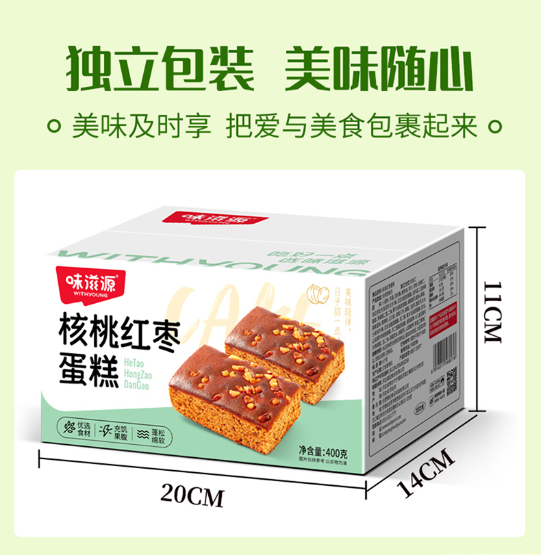 【味滋源】核桃红枣蛋糕400g 营早餐面包 传统糕点枣糕小吃零食休闲食品