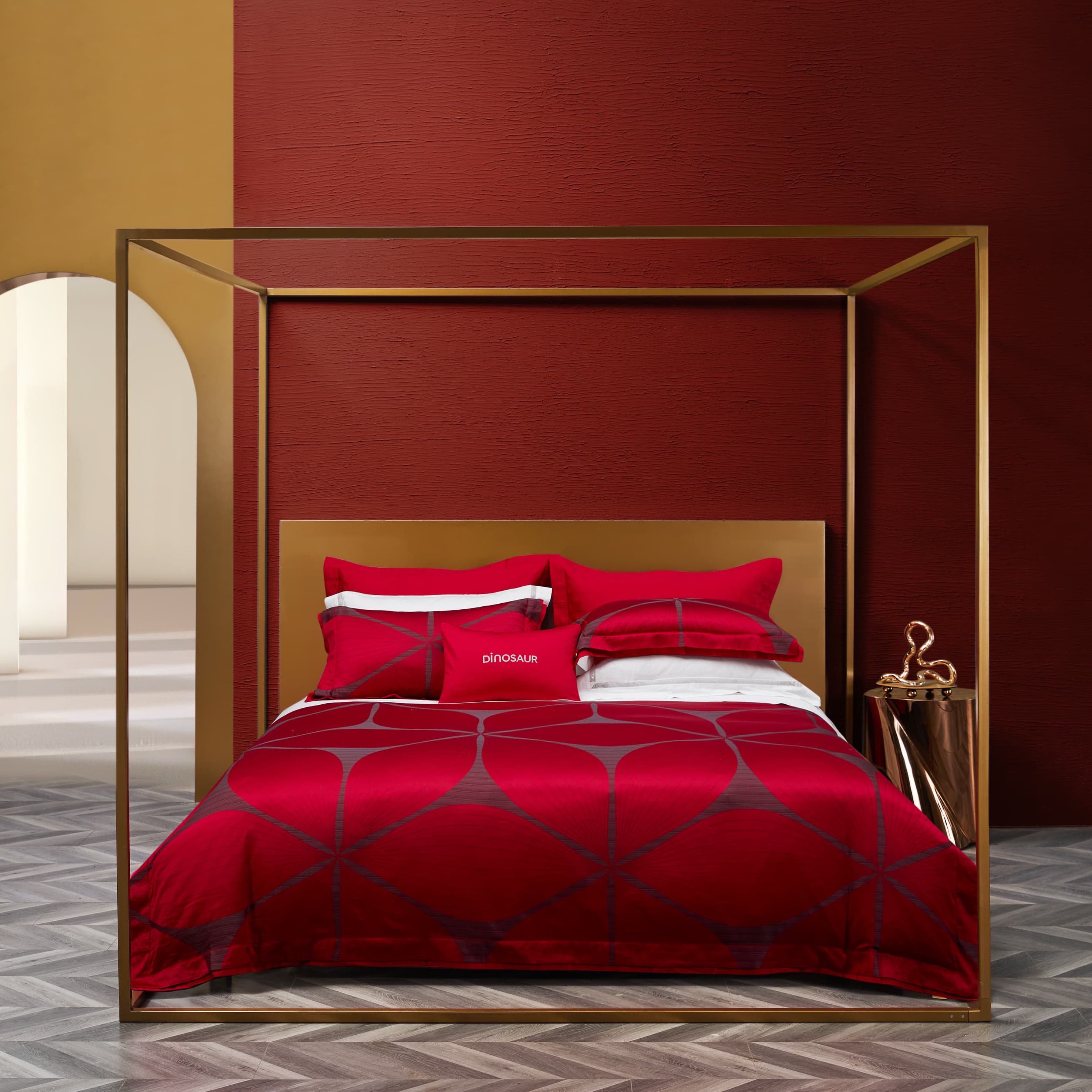 恐龙家纺XX 【欧布拉】80S全棉色织提花婚庆四件套(线下专柜款)