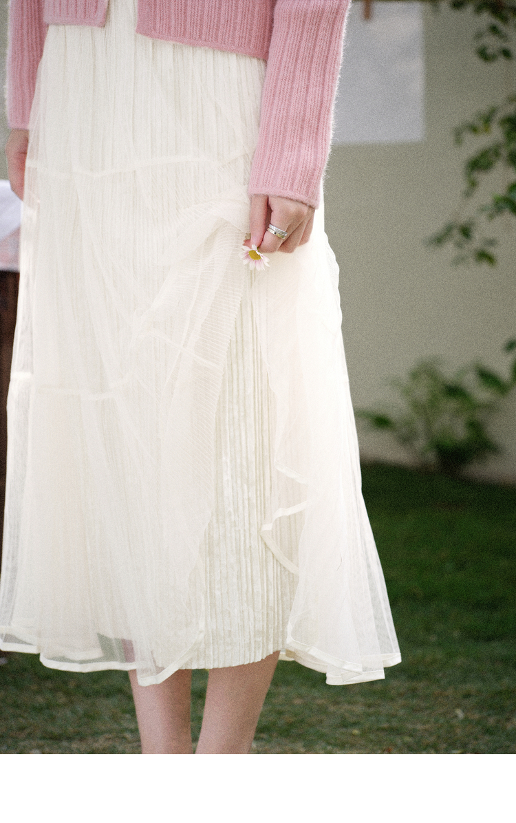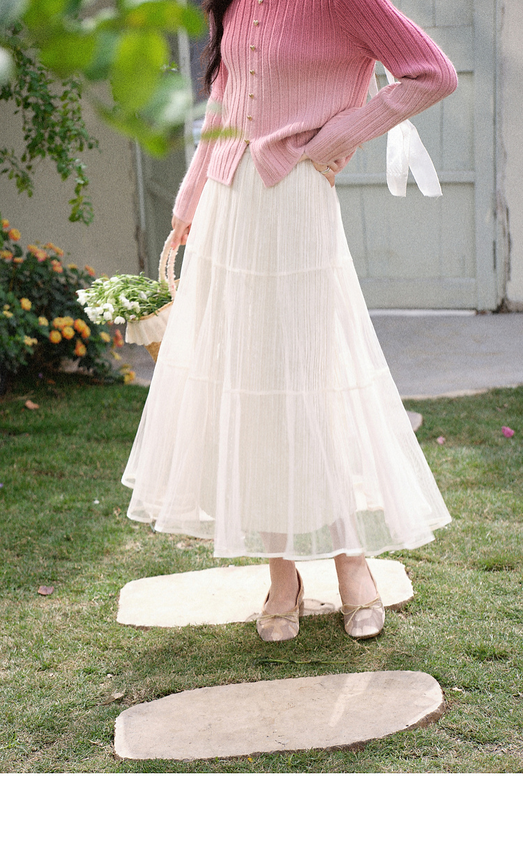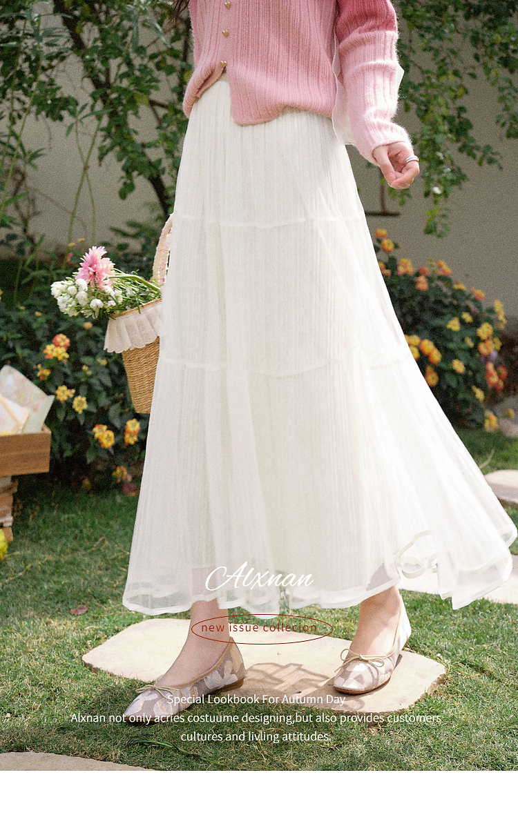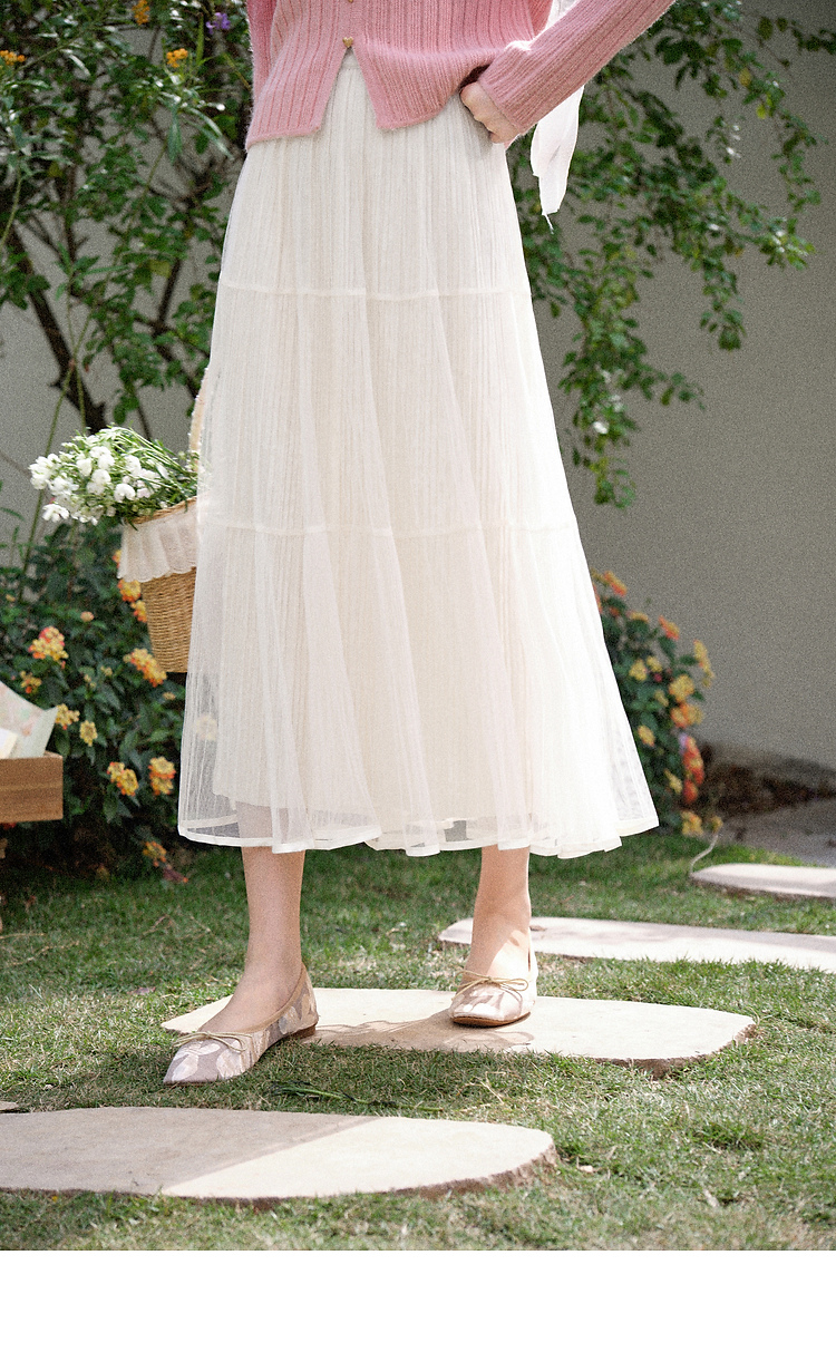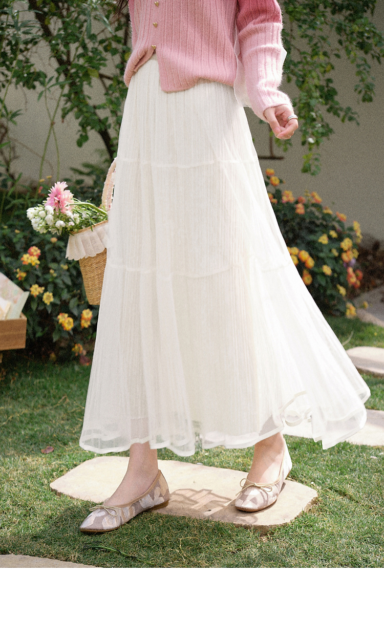 鹿向南「暖光曳步」杏色轻薄a字半身裙女春新款宽松显瘦高腰纱裙
